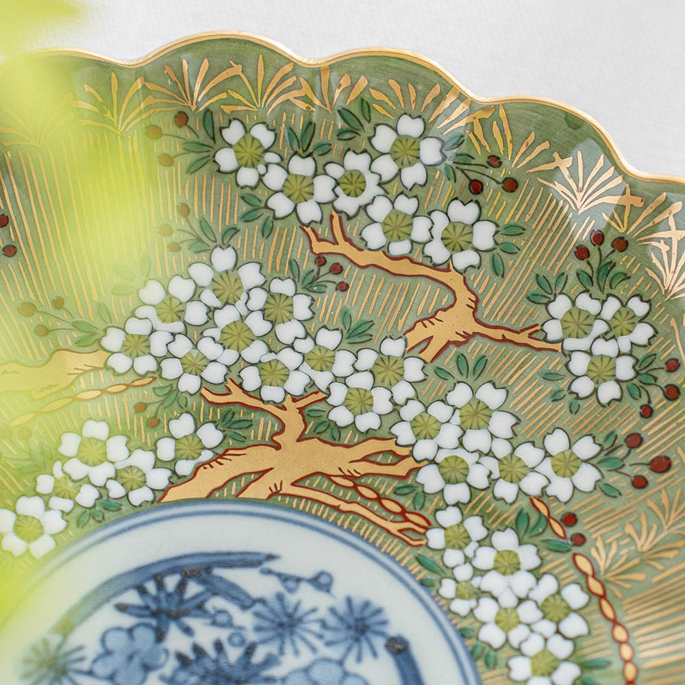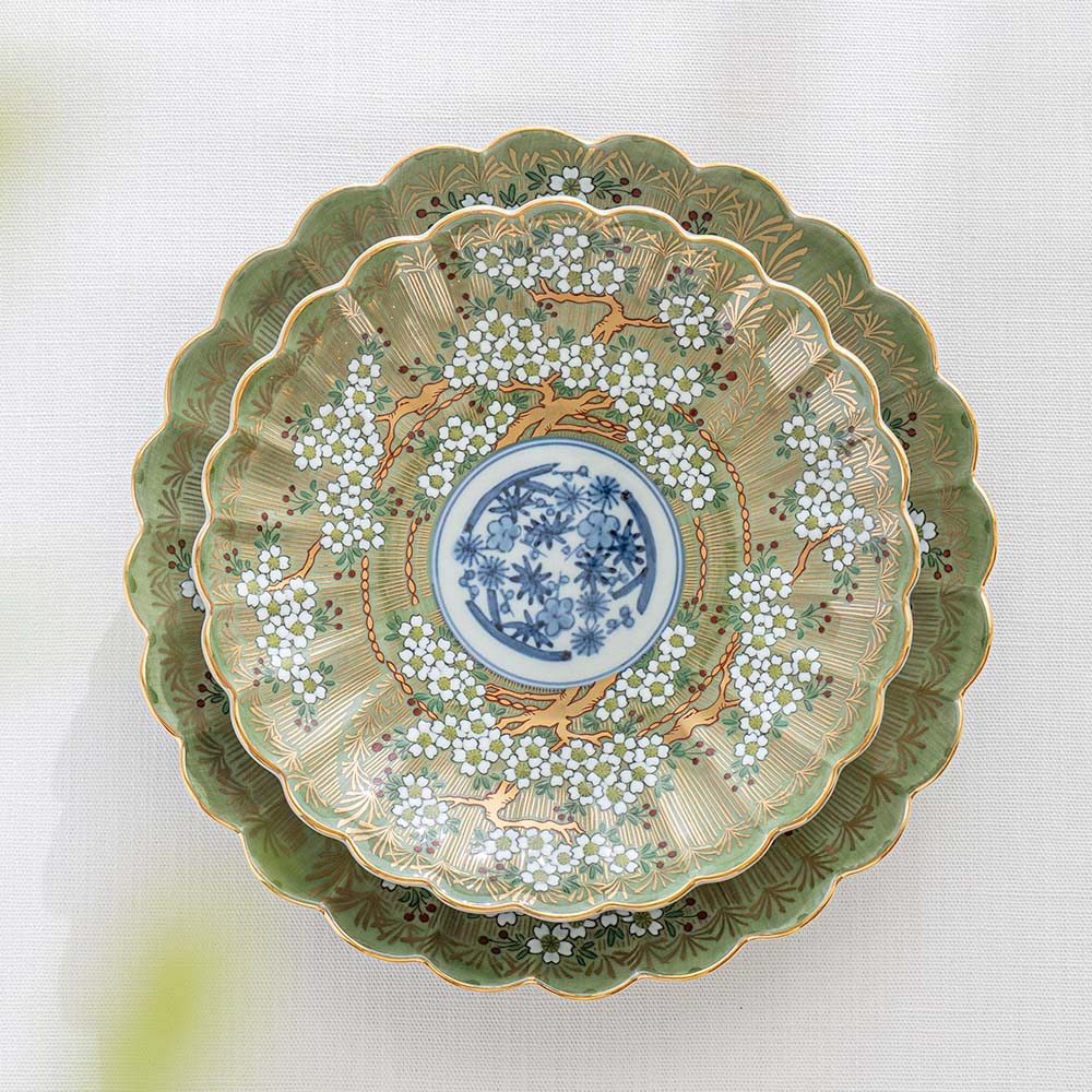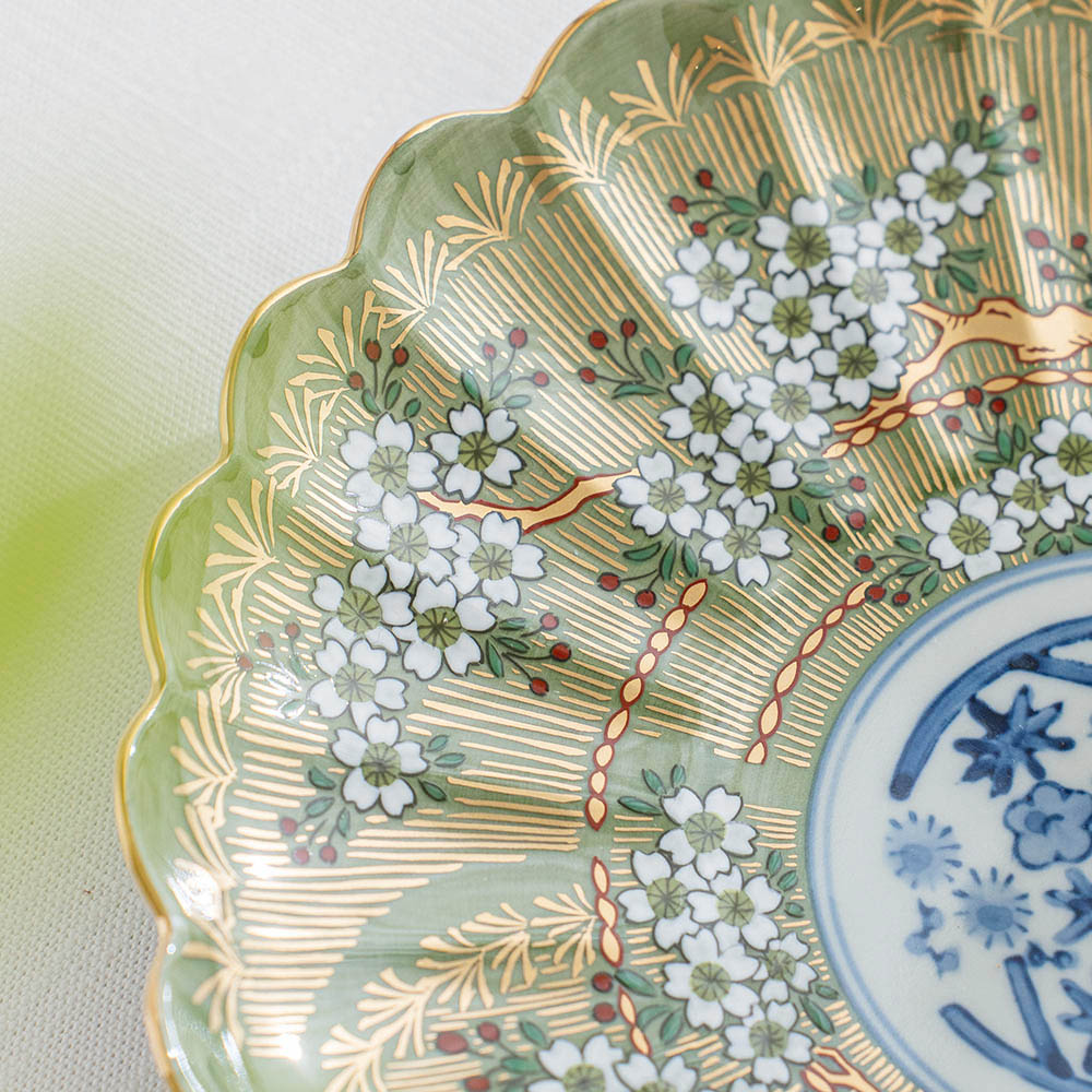 琳派櫻樹紋圓盤 綠 /林九郎窯 數量