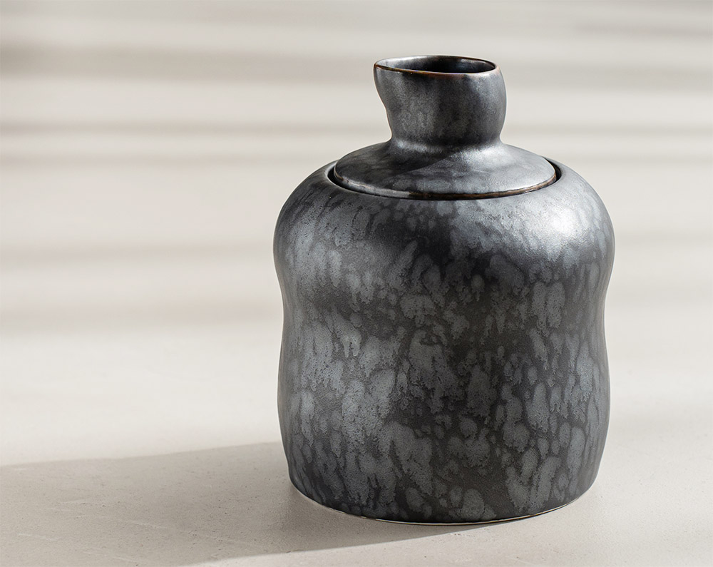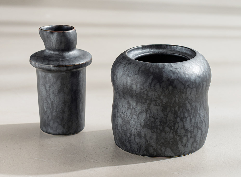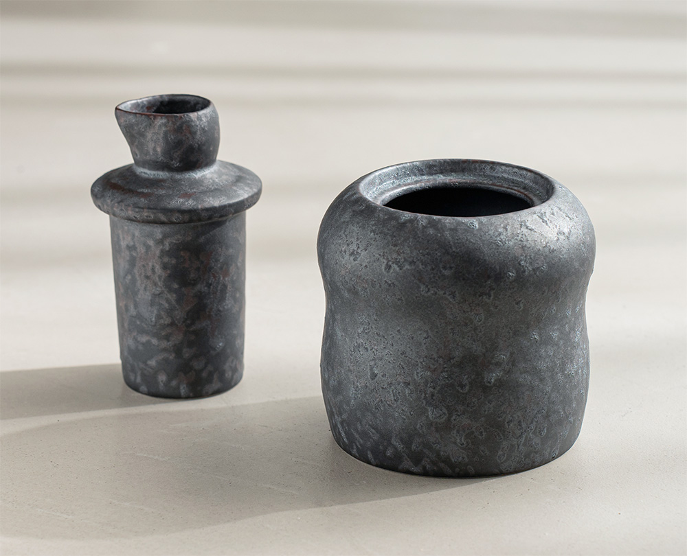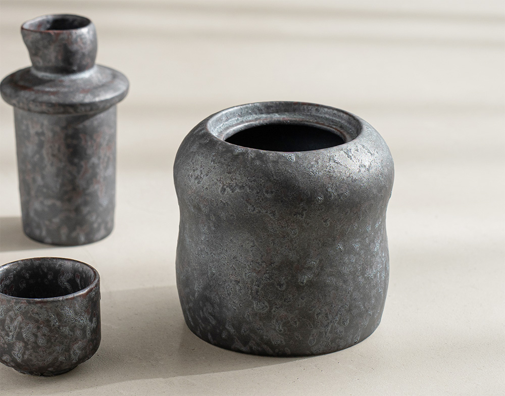 2.黑絞系列,以特殊天然礦物的釉料,在高溫窯爐的多次變化下,結晶成獨一無二的外觀和質感,呈現出具現代感的金屬光澤及紋路。