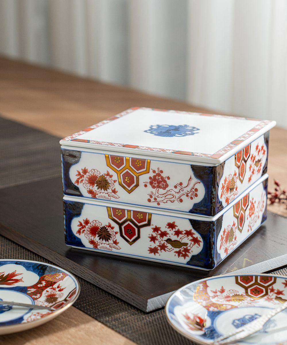 多次繁複上釉及燒製的過程,使器皿釉色穩定,可放入冰箱保存也可進微波爐加熱。二段重箱的兩層附蓋設計,可做為宴客時使用的特殊器皿,盛放各式華麗料理或是點心零嘴,能使賓主盡歡,家中空間更顯品味。