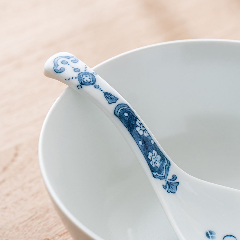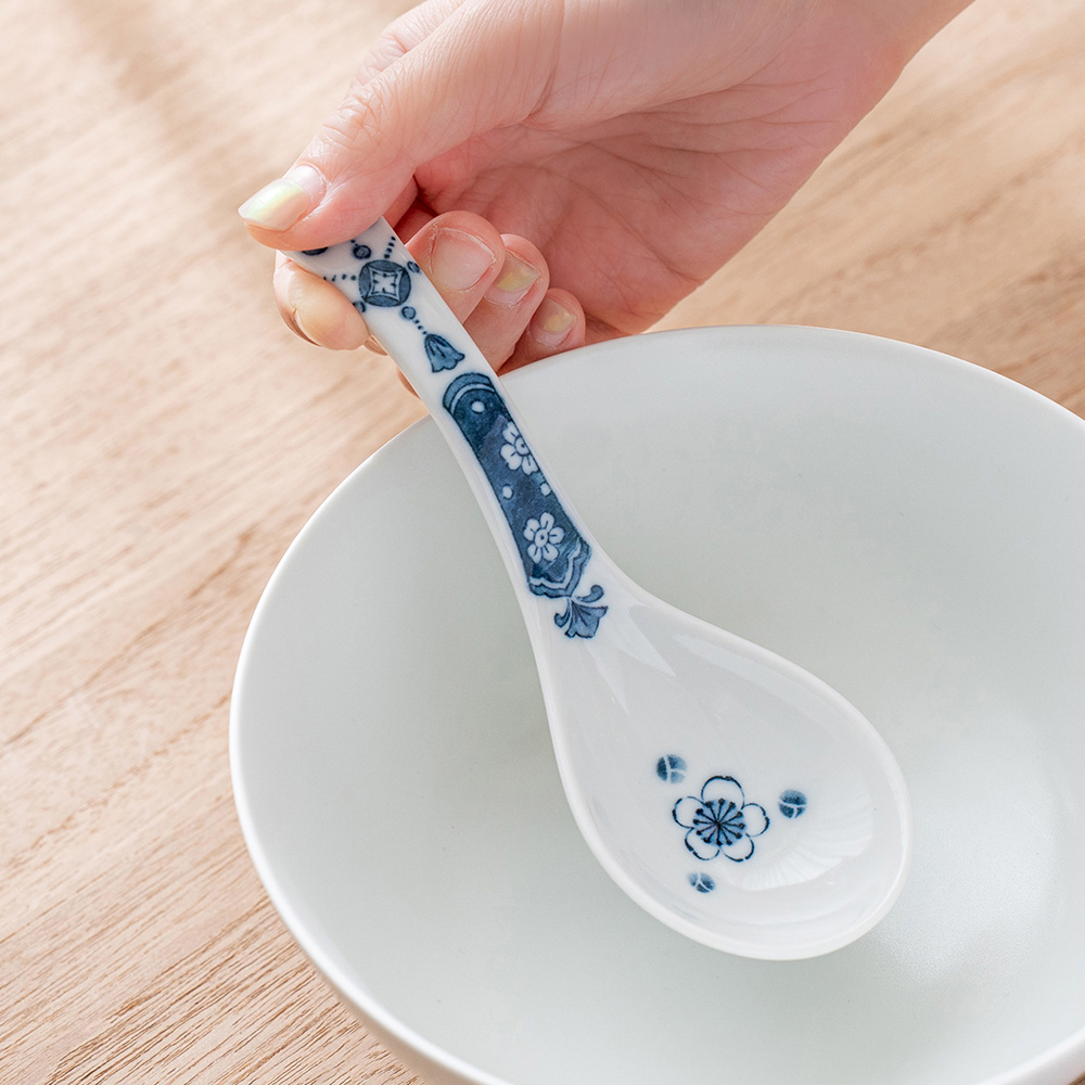 這是一款展現日本傳統紋樣之美的器皿。屬於描繪吉兆與幸運象徵圖案的高雅器物「祥瑞系列」的湯匙。