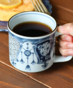 這是一款展現日本傳統紋樣之美的器皿。屬於描繪吉兆與幸運象徵圖案的高雅器物「祥瑞系列」的馬克杯。