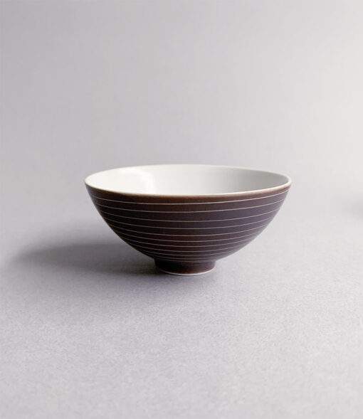 細緻白瓷與獨特的錆色搭配,加上手繪漩紋線條,是李莊窯出品,沈穩優雅風格的經典茶具之一。