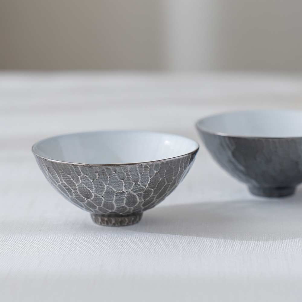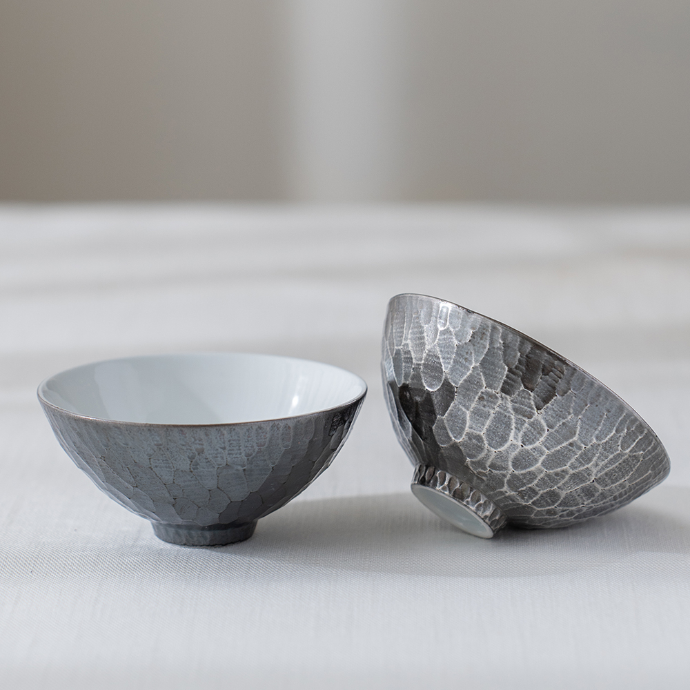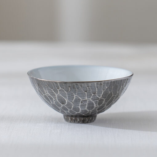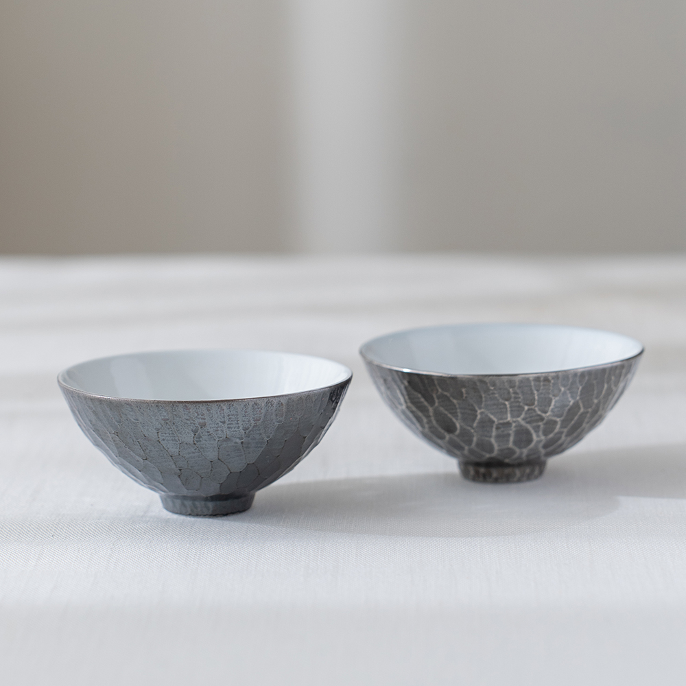 彷手敲槌目紋路的設計風格茶杯,獨有的深色古銀彩釉料,營造出如銀器般的華麗,卻有著瓷器的圓潤及溫暖手感,在任何空間中都能創造出品味風情。