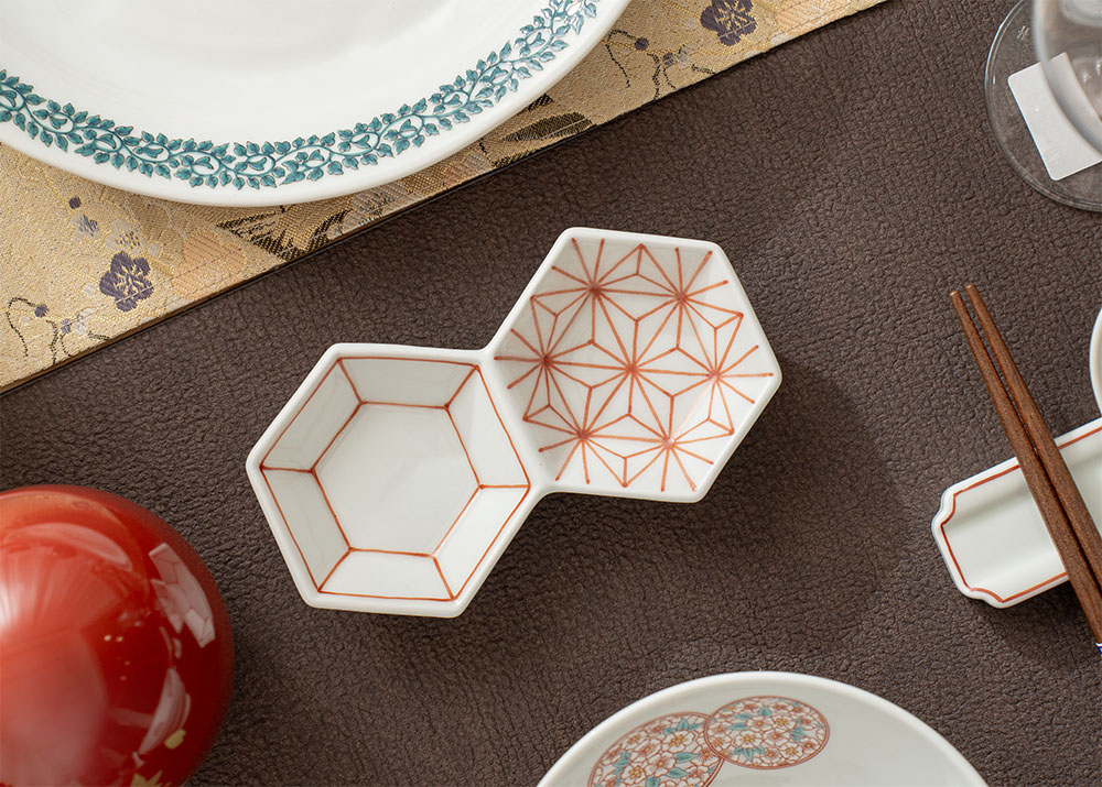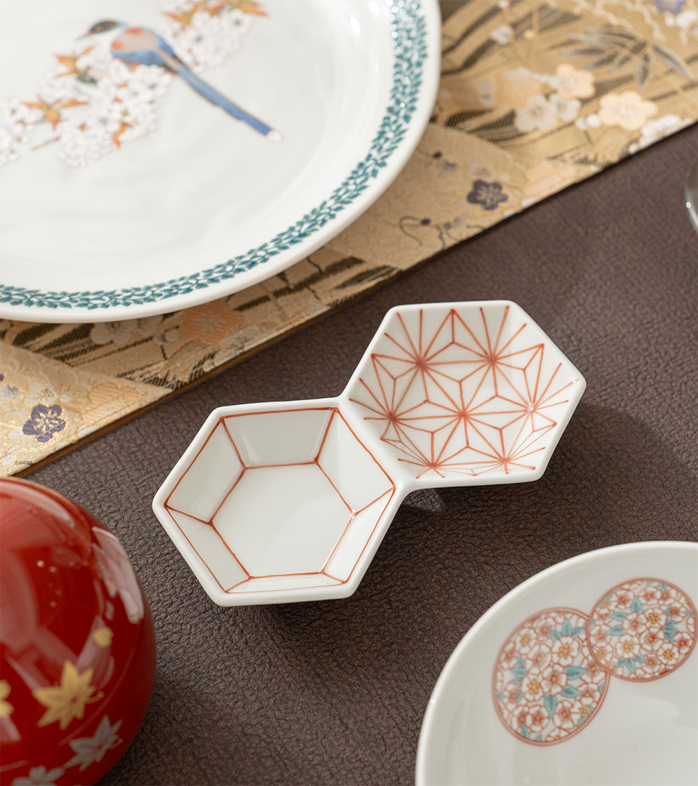 麻葉龜甲 二連醬料碟 (13.5cm)