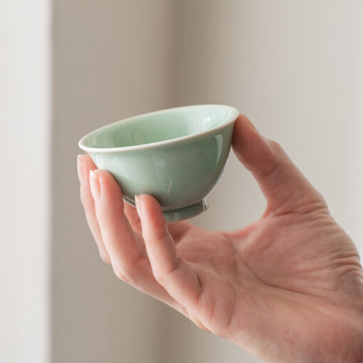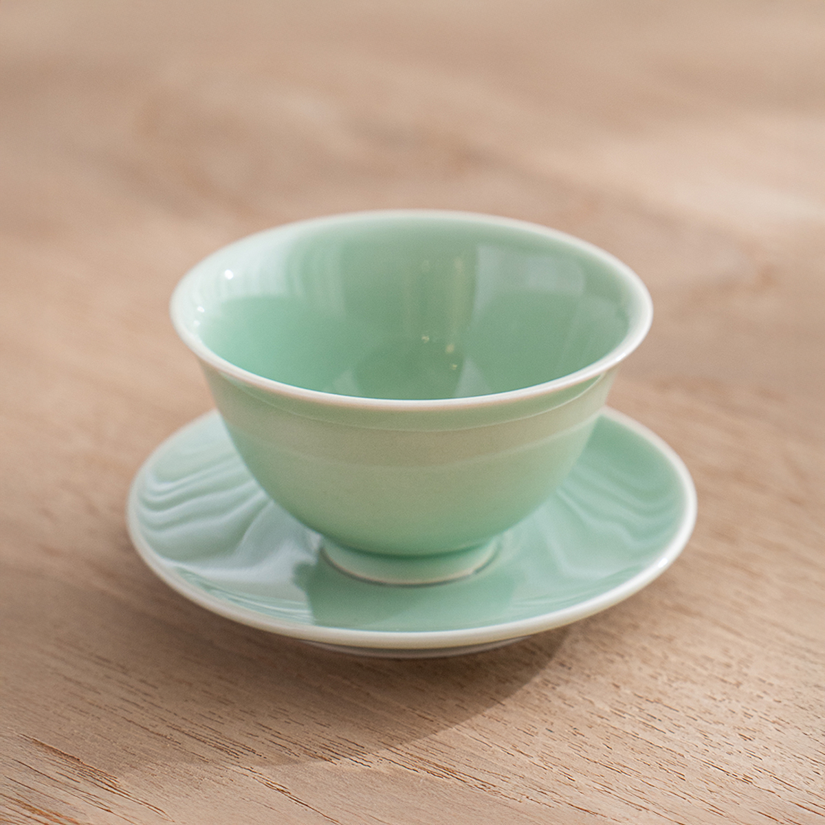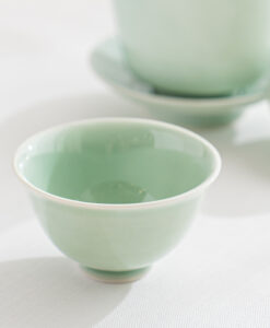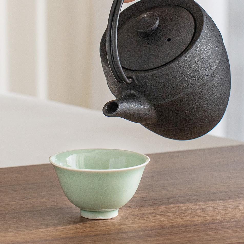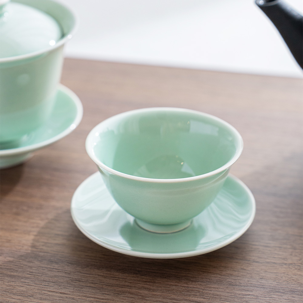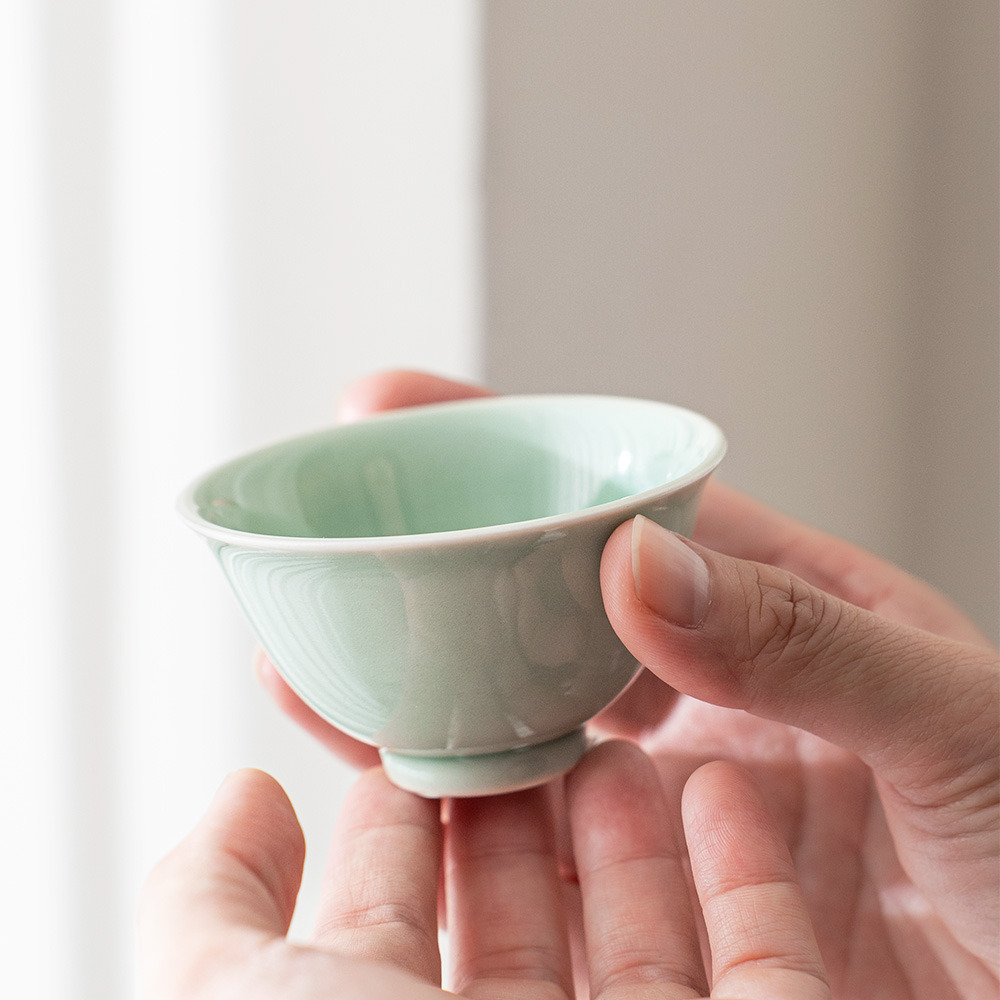 溫潤如玉的青瓷釉色,宛如晨霧中的一抹青翠,低調而迷人。杯身線條簡潔洗練,也展現出雅緻的東方美感,溫潤細膩的手感令人愛不釋手。單杯使用足夠雅致,也可自由搭配同款寶瓶或蓋杯是品茗的好物器皿。