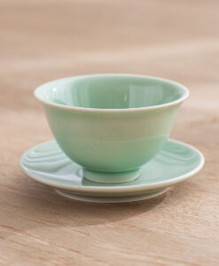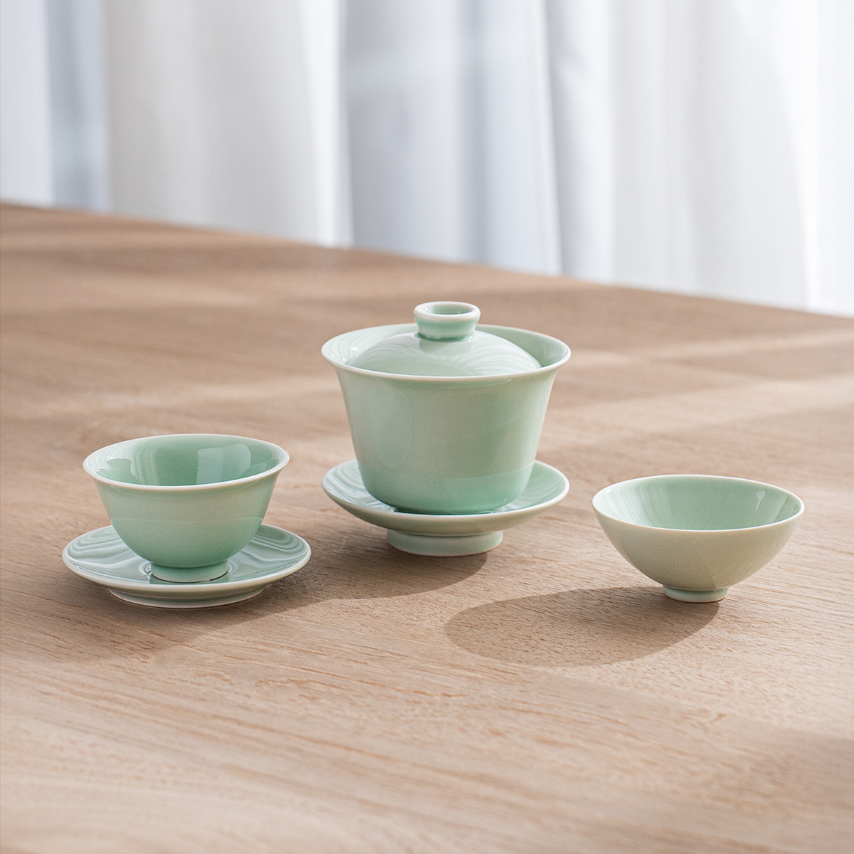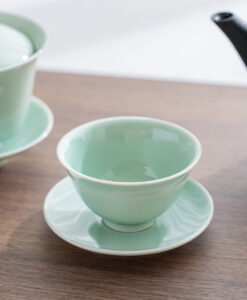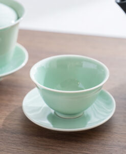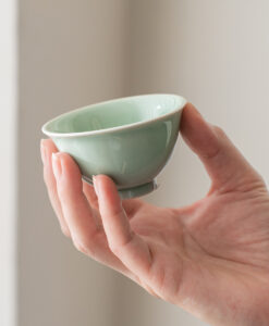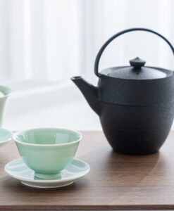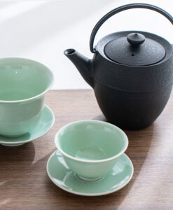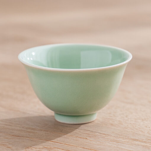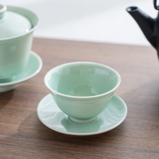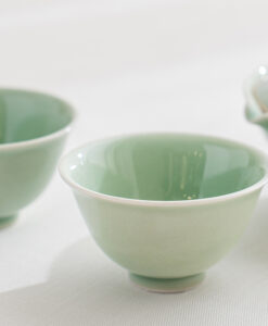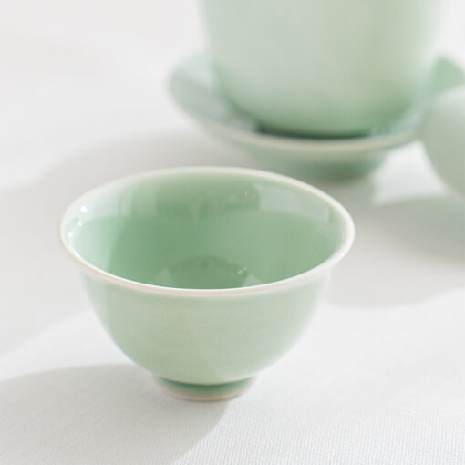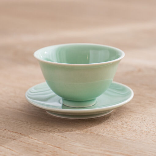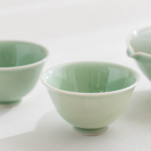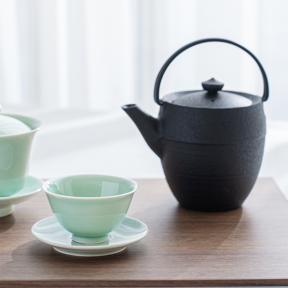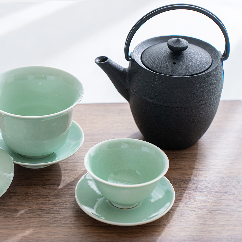 溫潤如玉的青瓷釉色,宛如晨霧中的一抹青翠,低調而迷人。杯身線條簡潔洗練,也展現出雅緻的東方美感,溫潤細膩的手感令人愛不釋手。單杯使用足夠雅致,也可自由搭配同款寶瓶或蓋杯是品茗的好物器皿。