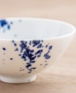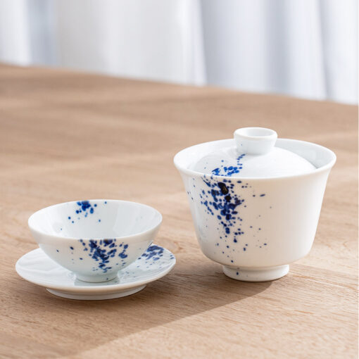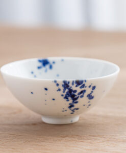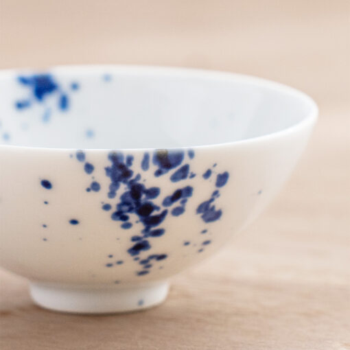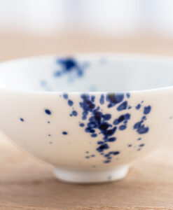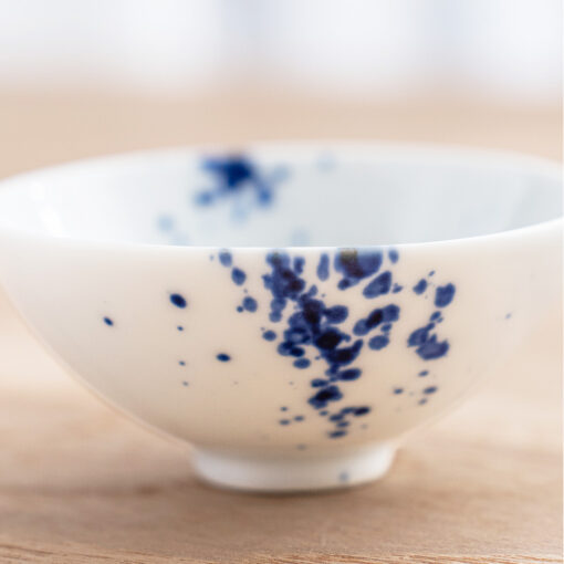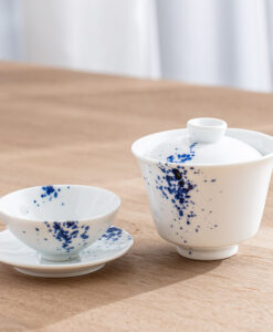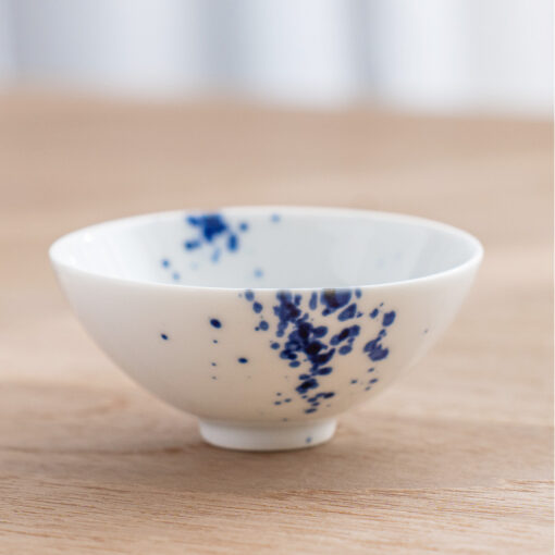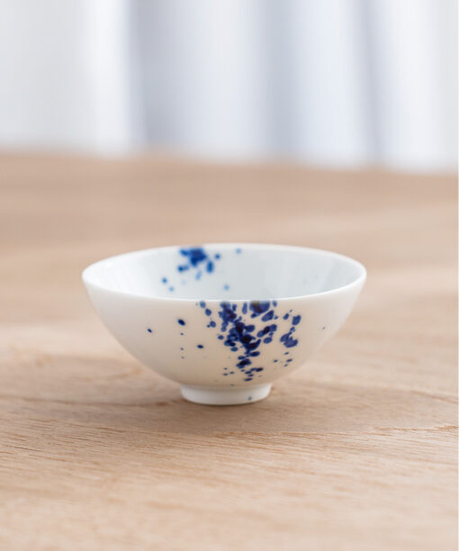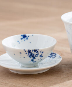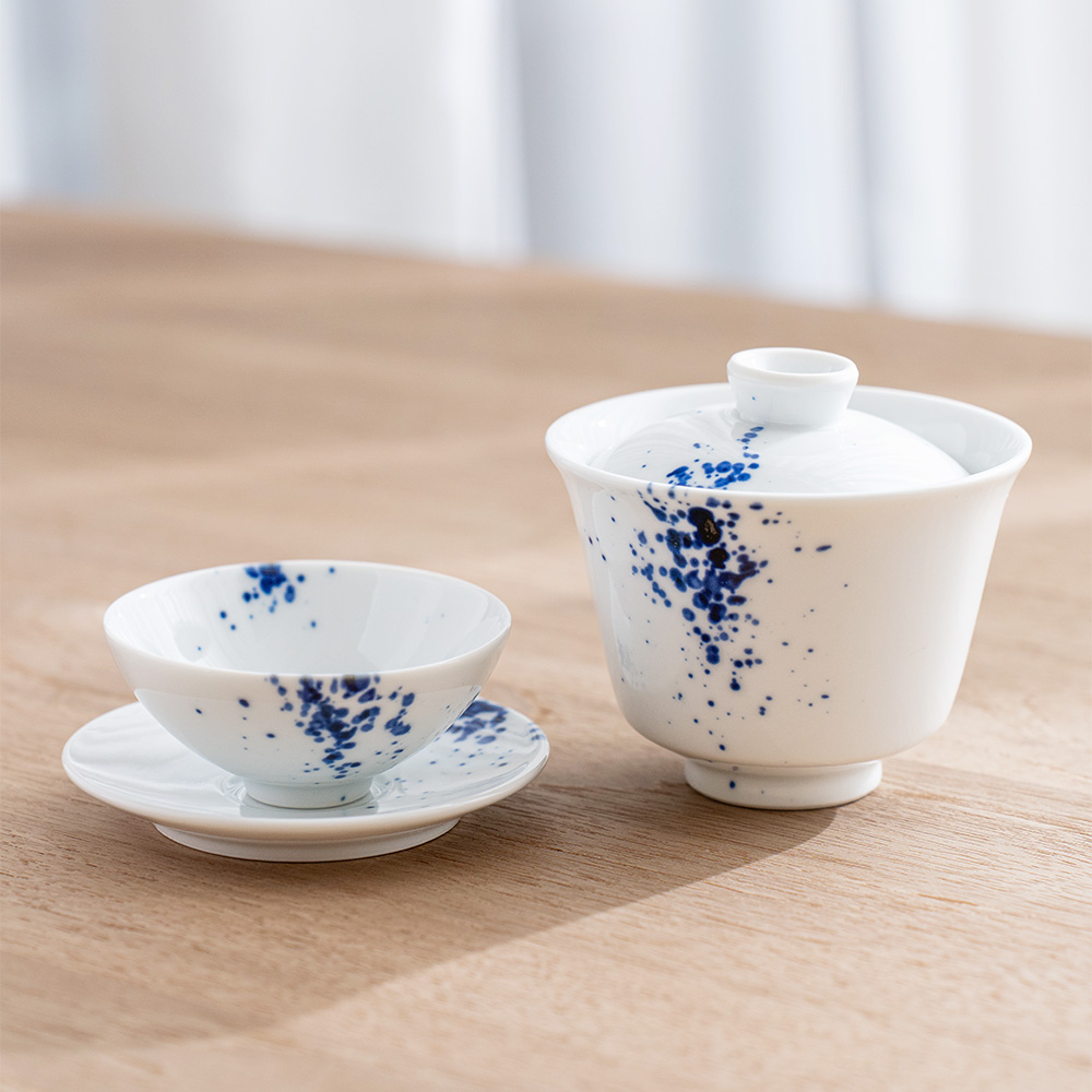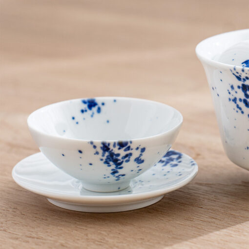 創意而具風雅的吹墨圖紋,在明亮細緻的白瓷上特別有型。壺身一角有著錯落不一的吹墨紋,是李莊窯出品沈穩優雅風格的經典茶具之一。圓潤敞口的設計,不僅方便品飲,也展現出雅緻的美感,令人愛不釋手。