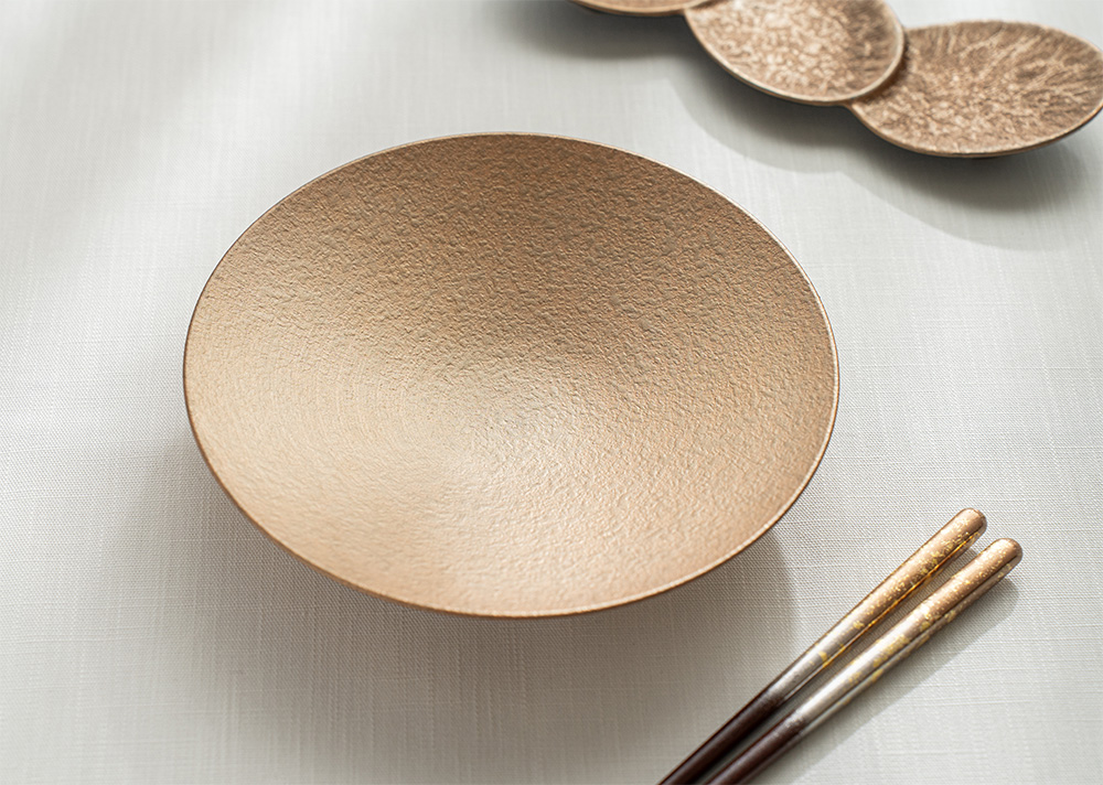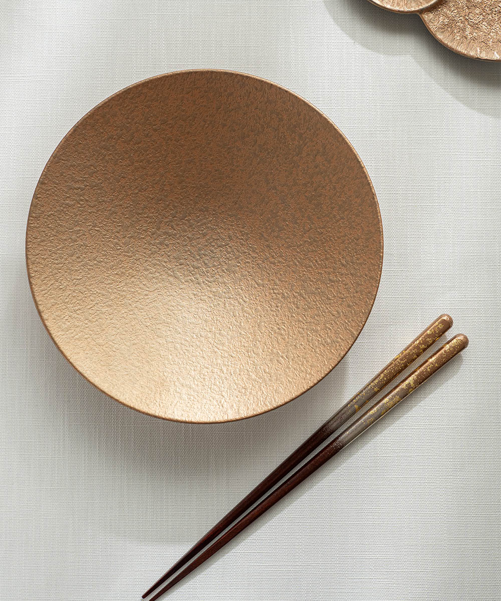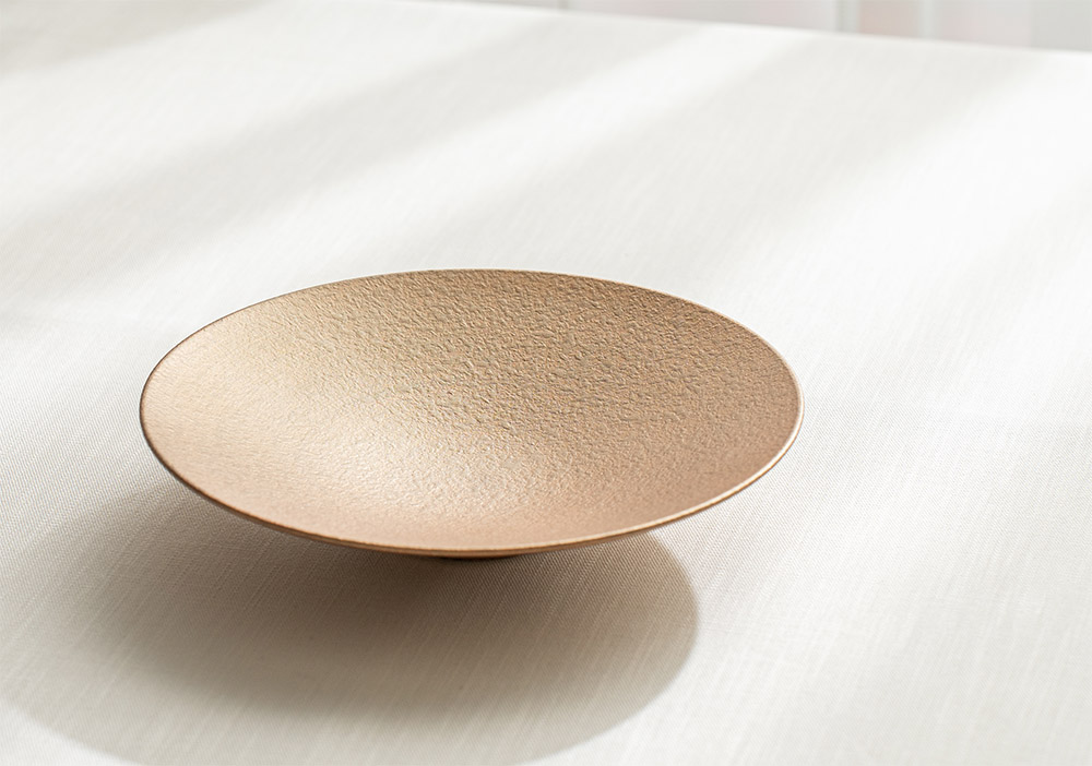 溫暖柔和的霧茶金釉彩,擁有少見的高級感,為你的料理增加華麗風情。 夠用的深度,可盛裝各式料理,也可做為妝點家中的置物盤。