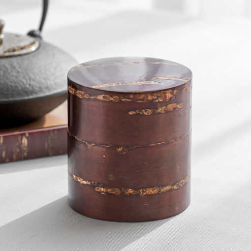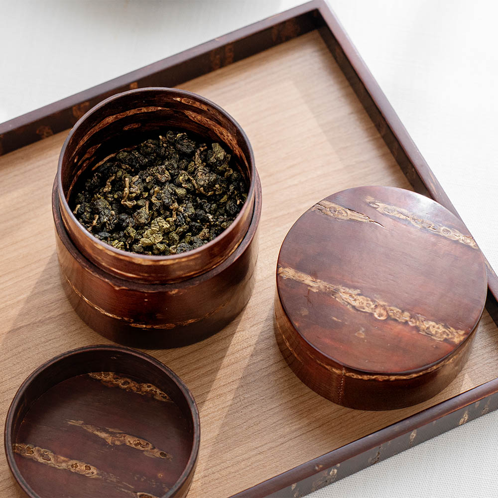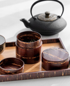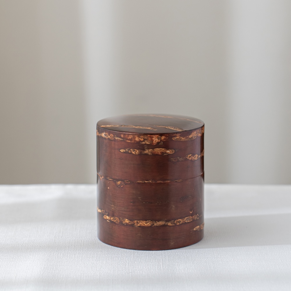 由傳統工匠藤村弘美,採用拋光處理的天然櫻桃樹皮手工製作而成,罐身櫻花圖示更顯日本傳統唯美氣息,隨著使用時間,會因日常使用與手的觸碰,逐漸產生光澤,越用越美。茶罐顏色將變得更佳柔和並呈現出獨特的紋理變化,形成獨一無二的「養成感」。