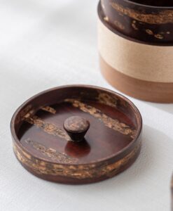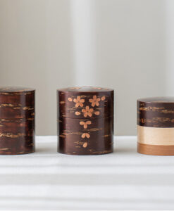 由傳統工匠藤村弘美,採用拋光處理的天然櫻桃樹皮手工製作而成,罐身櫻花圖示更顯日本傳統唯美氣息,隨著使用時間,會因日常使用與手的觸碰,逐漸產生光澤,越用越美。茶罐顏色將變得更佳柔和並呈現出獨特的紋理變化,形成獨一無二的「養成感」。