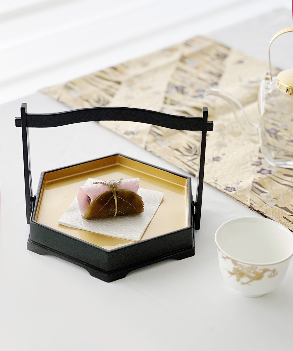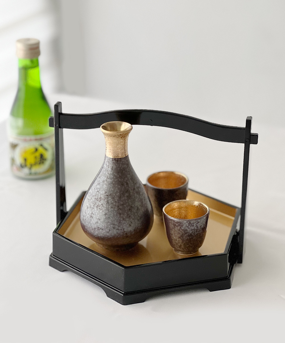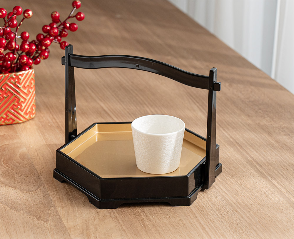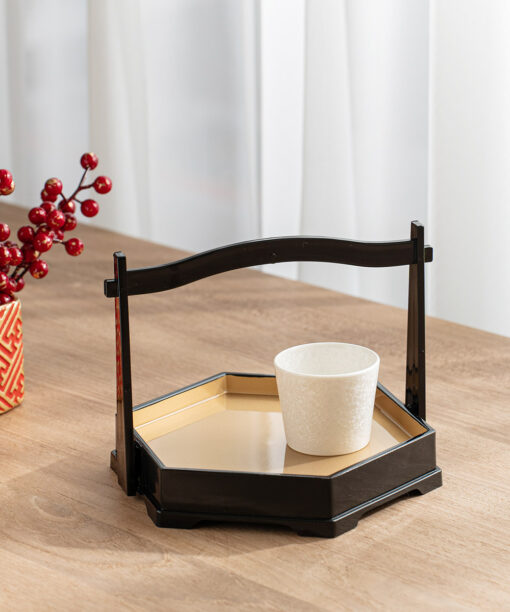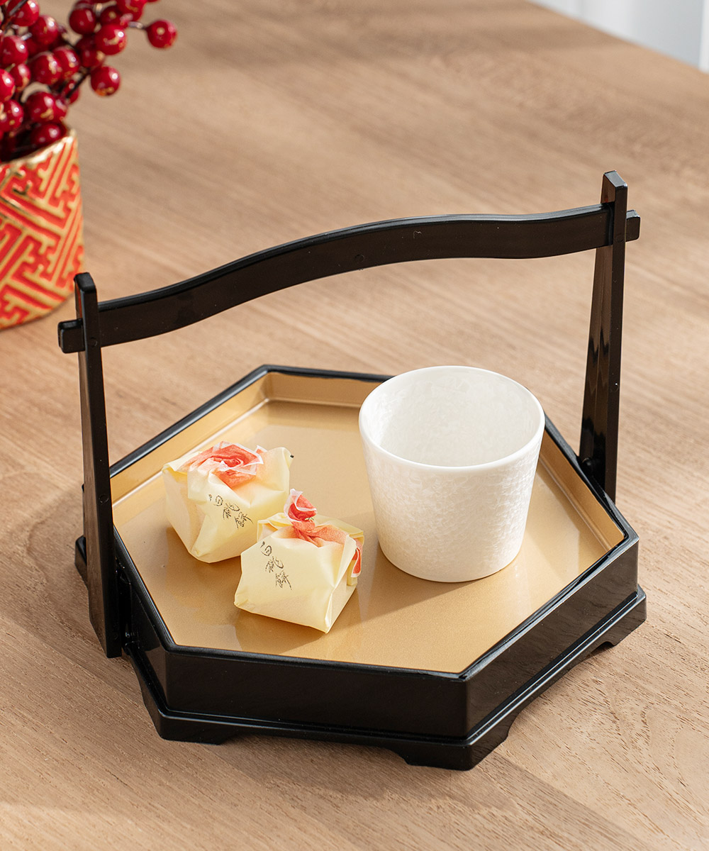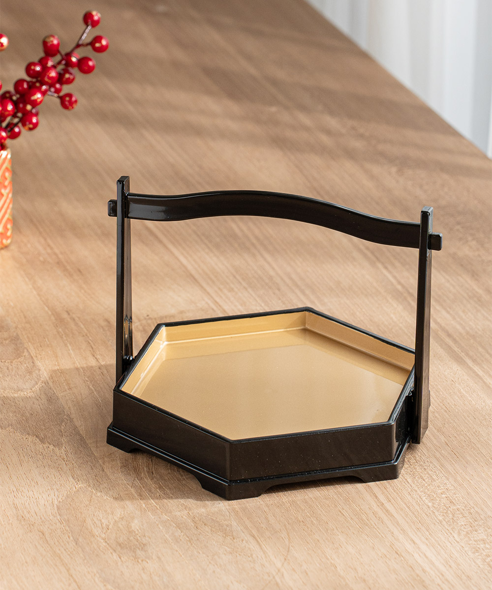 六角手提造型盤 黑金 (20.3cm)