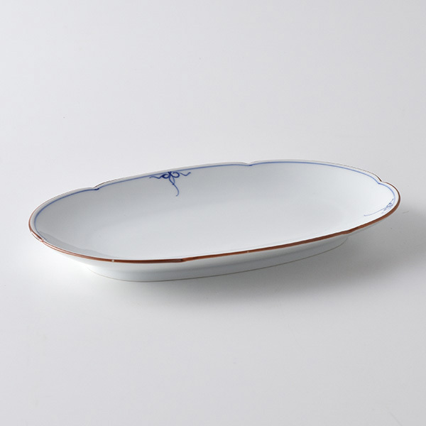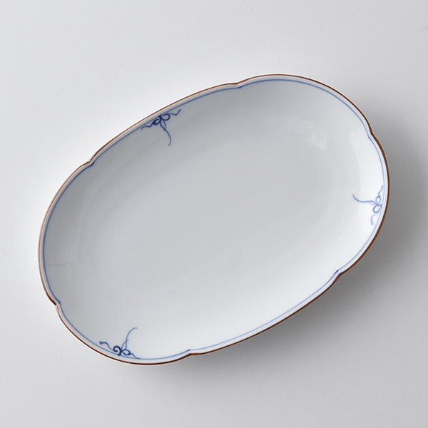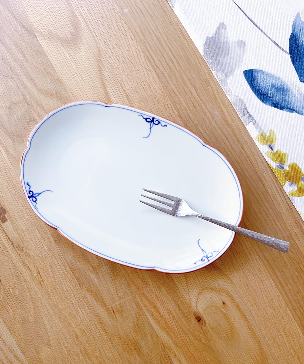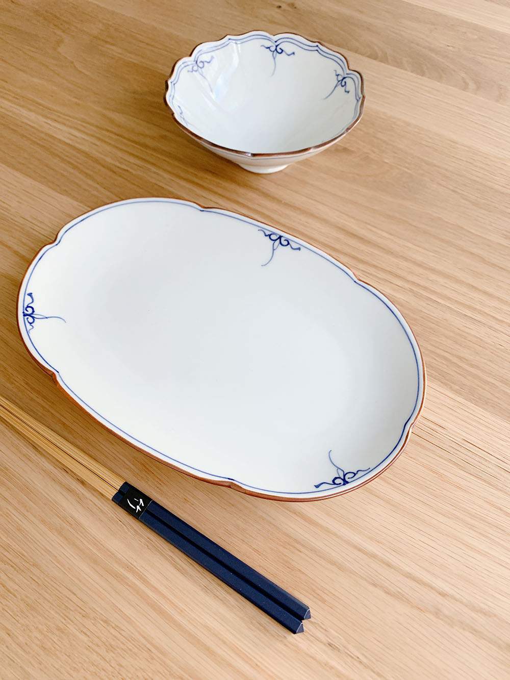 長崎縣波佐見町的知名窯廠 ,所有作品皆以其獨家的吳須釉料,職人手工描繪。有著明亮感的藍色吳須釉料,在輕薄的潔白瓷器上,顯得簡約優雅。盤緣的橘紅色錆線,為其作品特色。