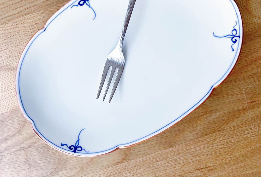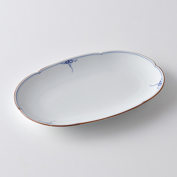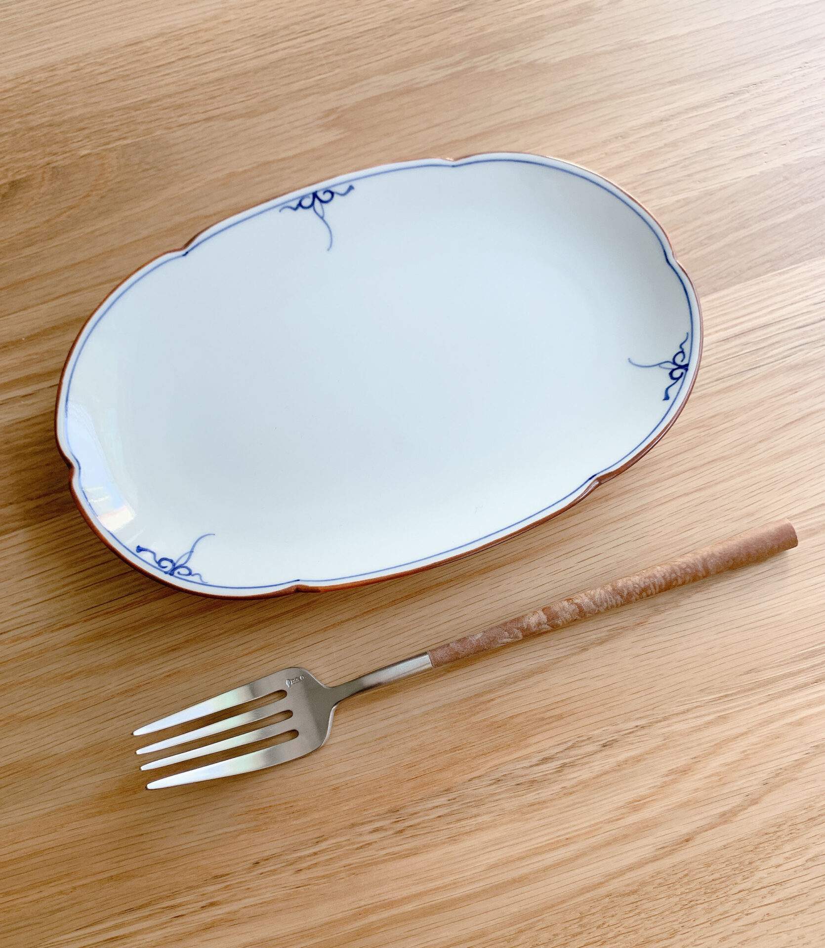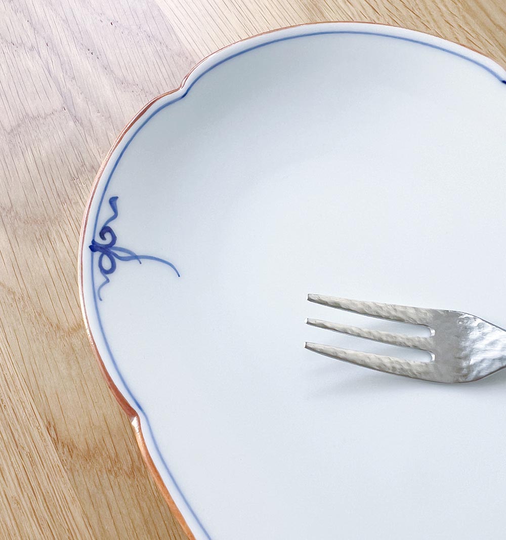 長崎縣波佐見町的知名窯廠 ,所有作品皆以其獨家的吳須釉料,職人手工描繪。有著明亮感的藍色吳須釉料,在輕薄的潔白瓷器上,顯得簡約優雅。盤緣的橘紅色錆線,為其作品特色。