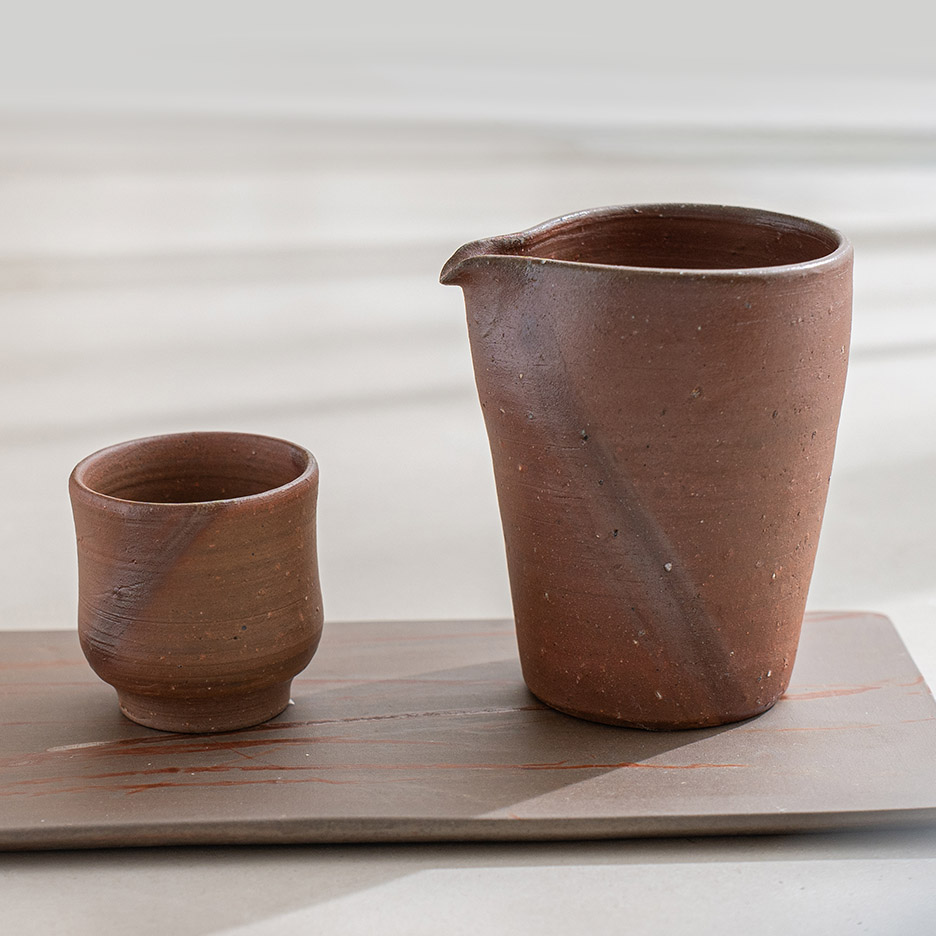 「緋襷(hidasuki)」是一種備前燒的技法,藉由稻草與器皿之間的貼合程度,當稻草燃燒完全後,在器皿留下緋紅色的美麗紋路,因此每件作品皆具有獨一無二的花紋。