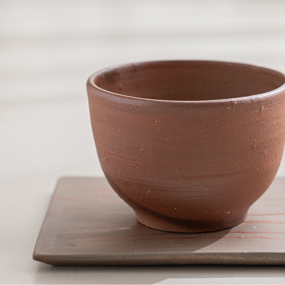 「緋襷(hidasuki)」是一種備前燒的技法,藉由稻草與器皿之間的貼合程度,當稻草燃燒完全後,在器皿留下緋紅色的美麗紋路,因此每件作品皆具有獨一無二的花紋。