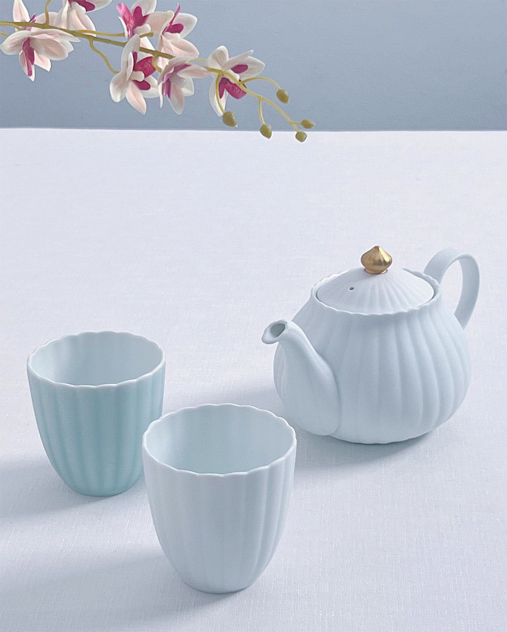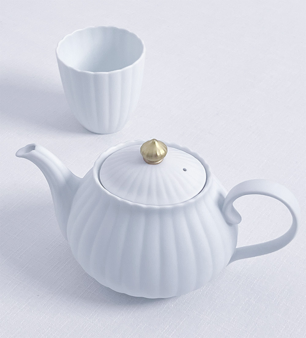 畑萬陶苑以傳統工藝,挑戰了青瓷的全新表現形式,並創造了帶有噴砂表面的啞光紋理“moist”系列。溫潤柔美的質地觸感非常順滑,給人清爽的感覺。