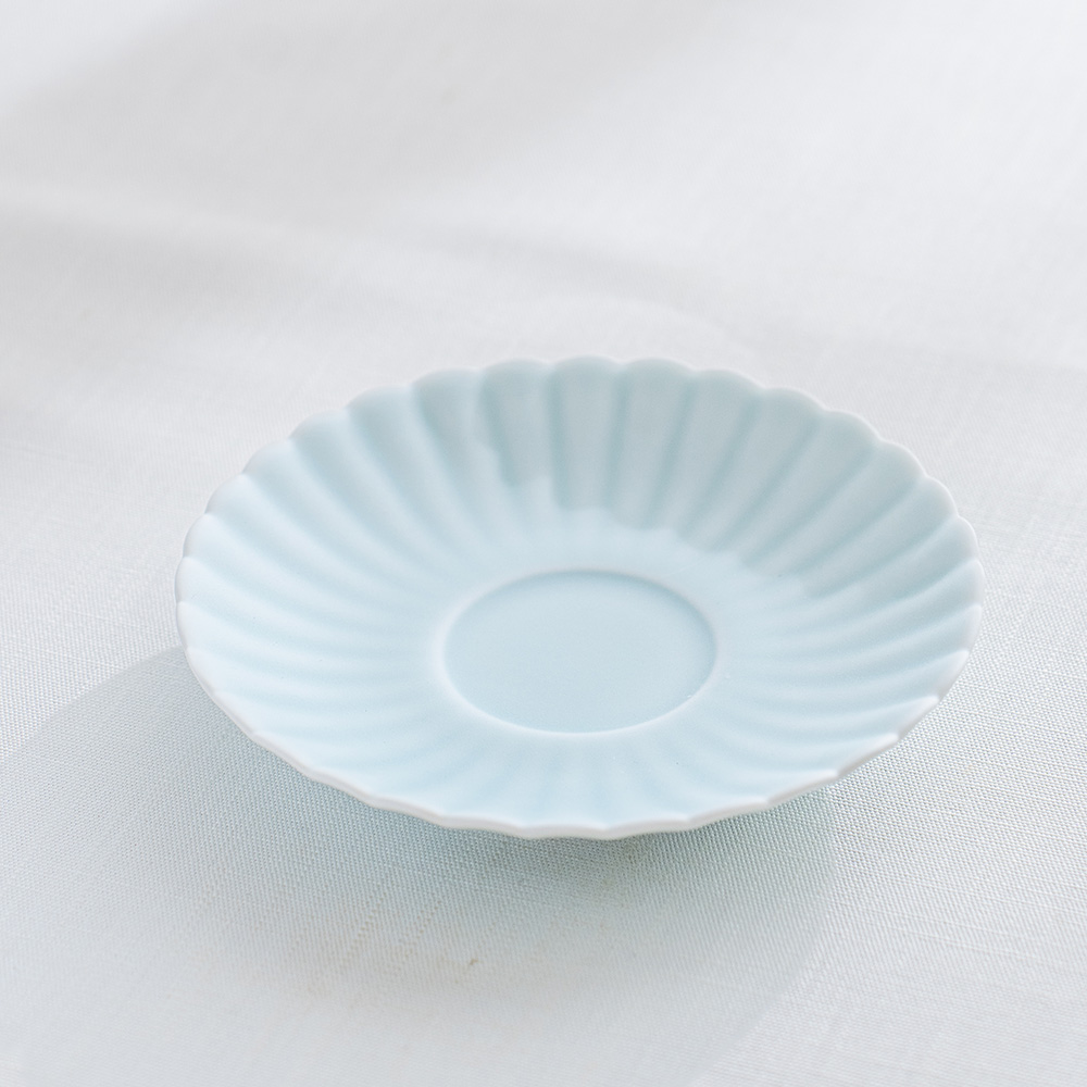 畑萬陶苑以傳統工藝,挑戰了青瓷的全新表現形式,並創造了帶有噴砂表面的啞光紋理“moist”系列。溫潤柔美的質地觸感非常順滑,清新的藍綠色漸層給人清爽的感覺。