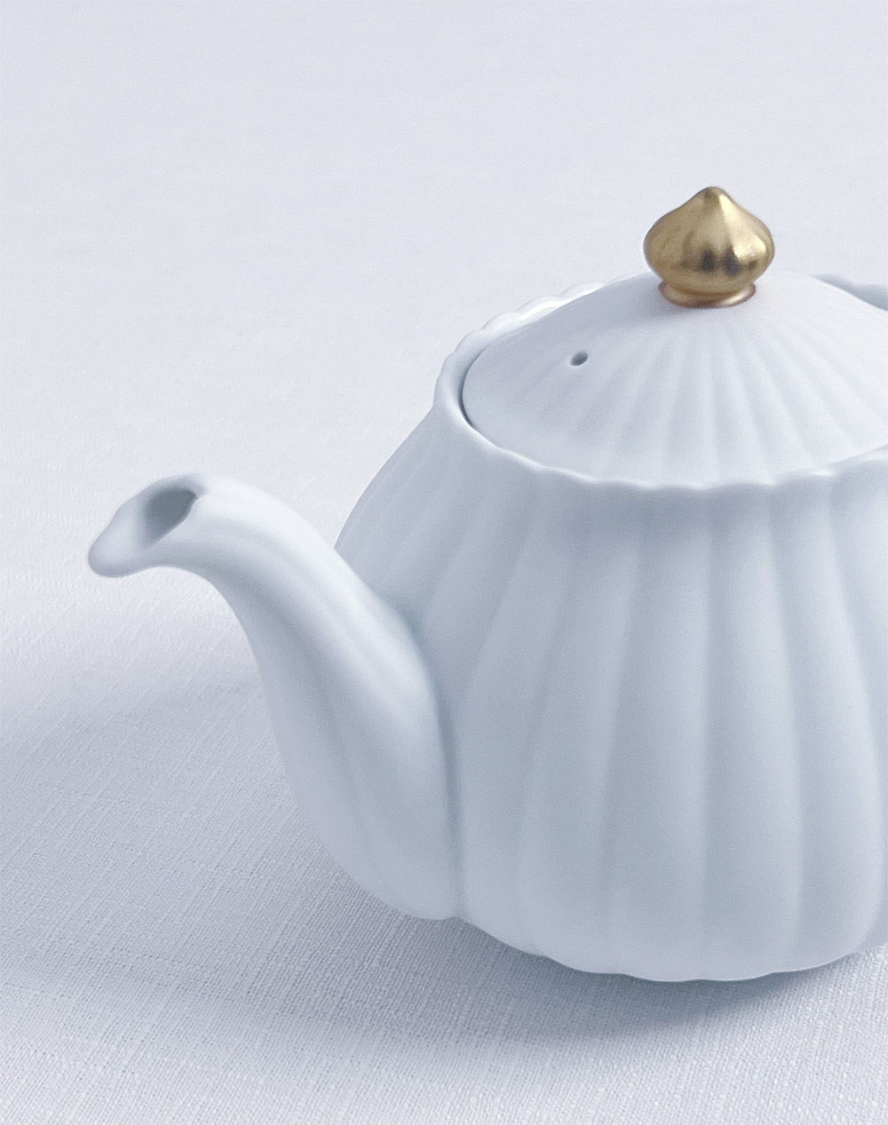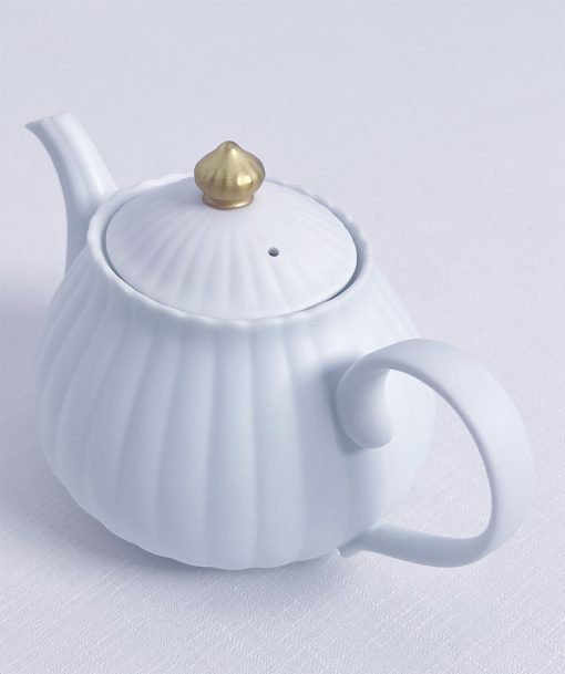 柔美的菊割線條茶壺,搭配壺蓋上的高質感金色釉彩,現代感十足。展現潔白悠靜的飄逸,氛圍感,壺形具立體美感,讓品茶時刻更為美好。