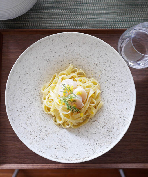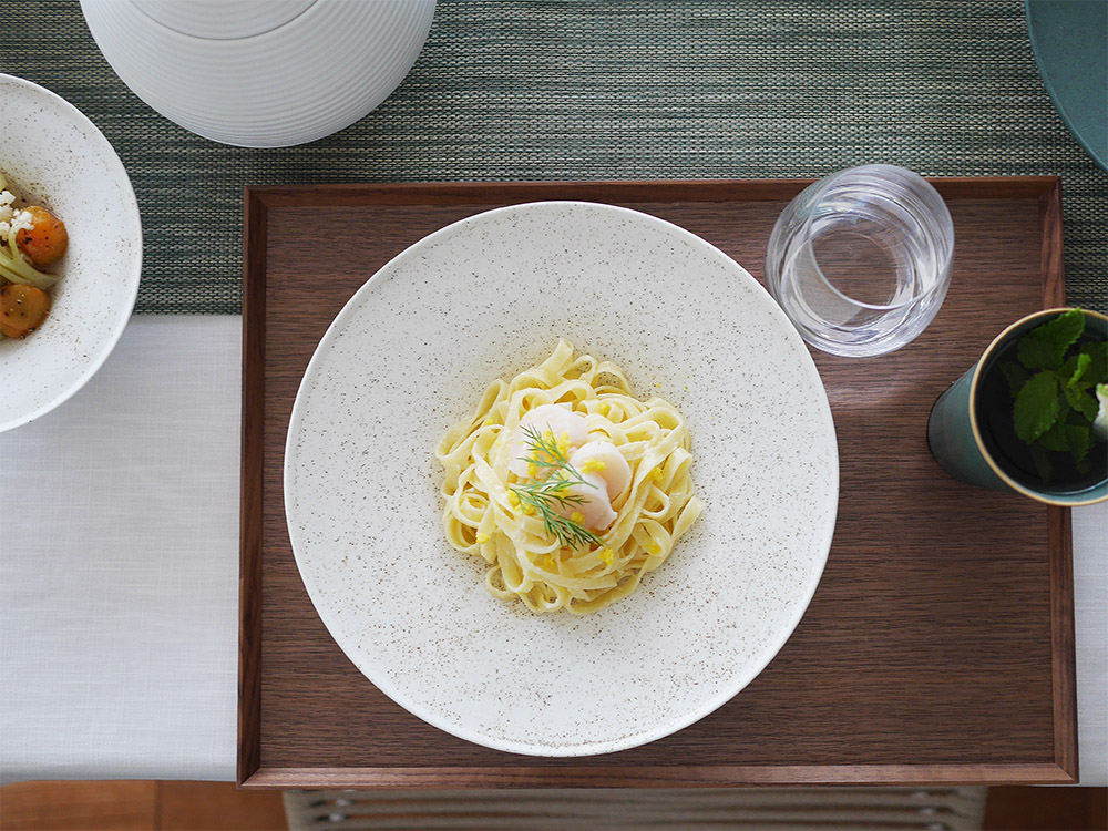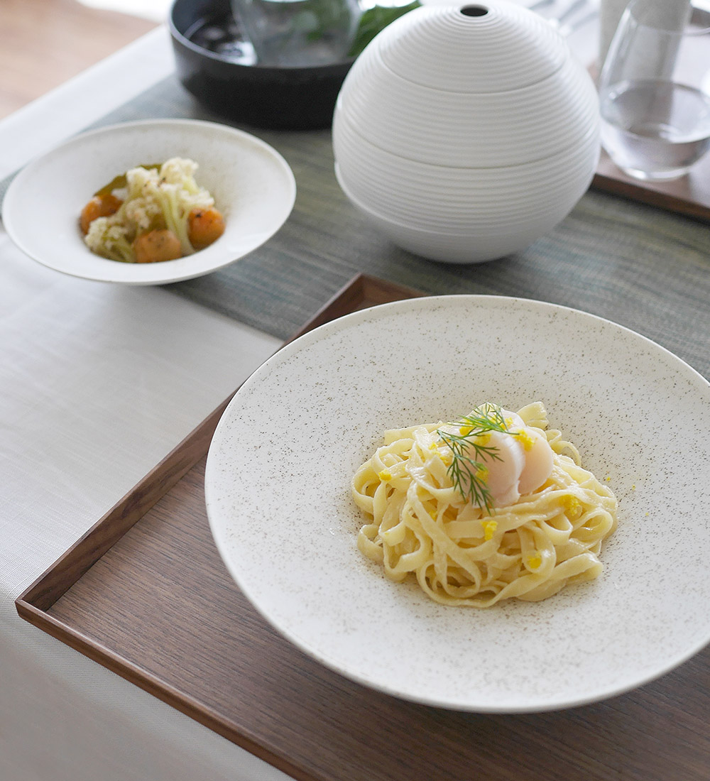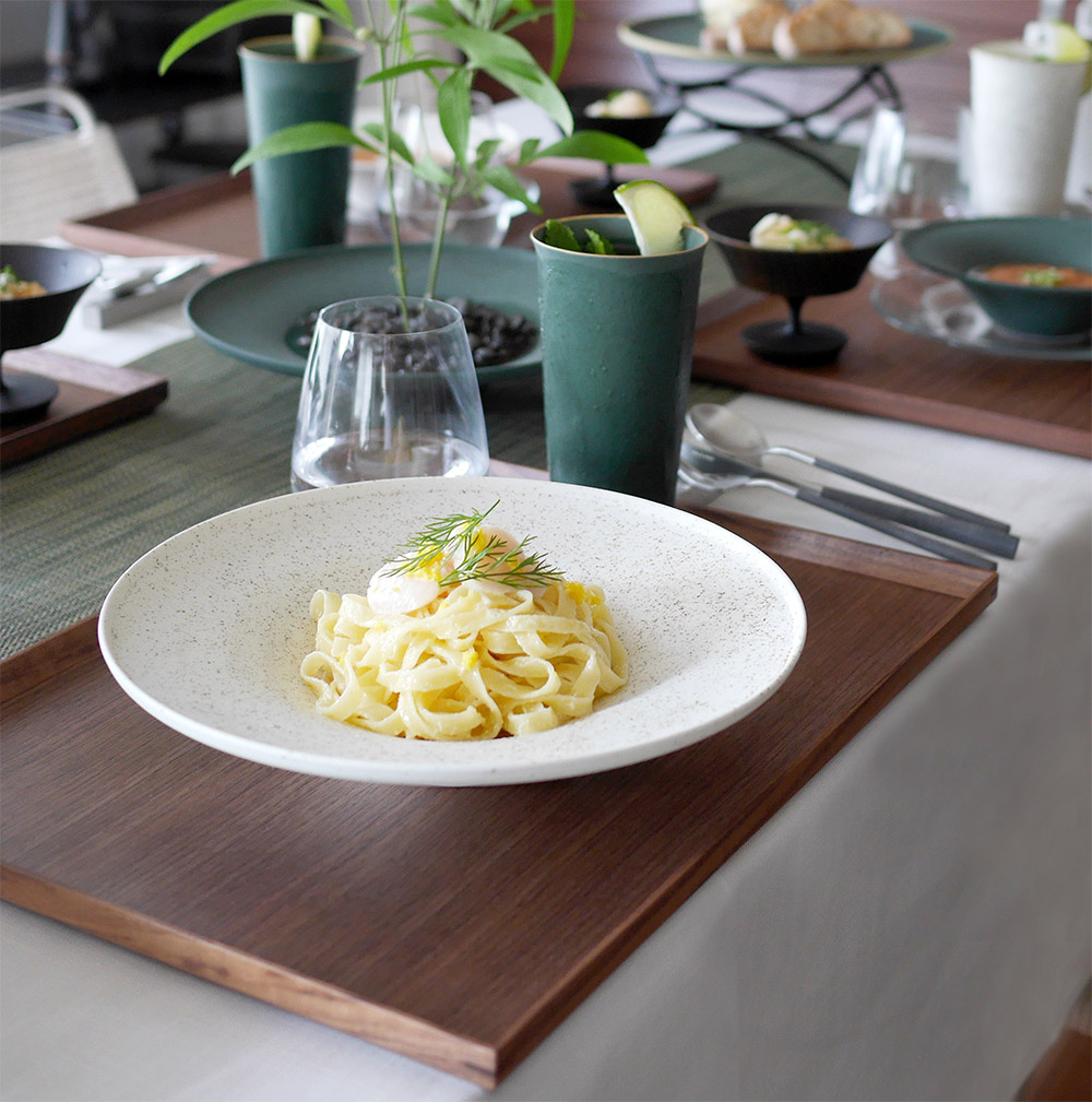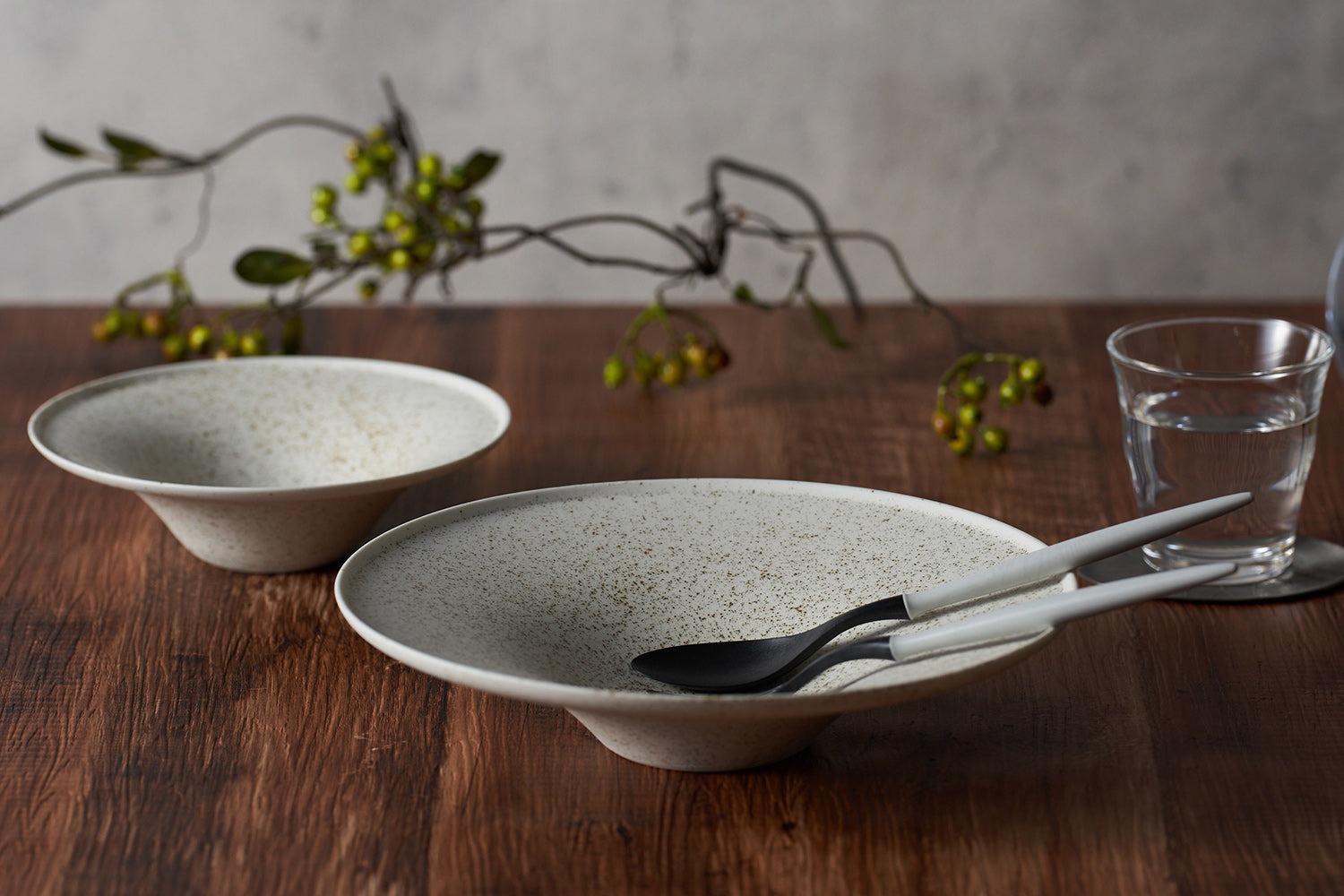盤緣設有突出的邊緣(Rim),在擺盤時能襯托料理,使食材更加吸睛。不論是濃湯或是一道簡單的料理,都能為餐桌增添層次與氛圍。