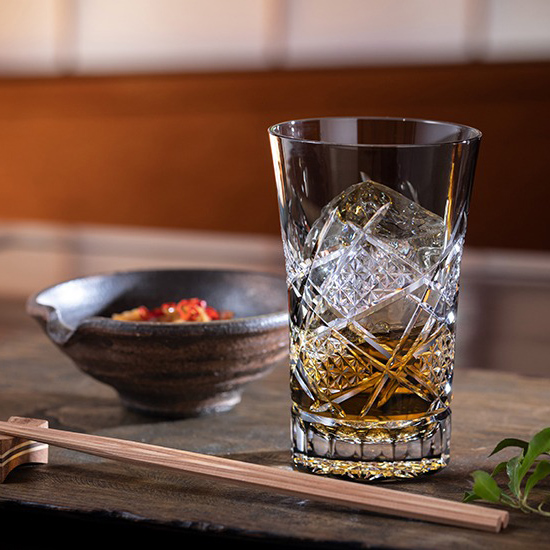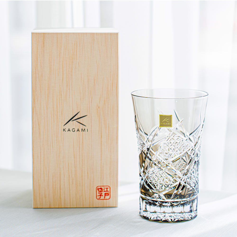 【2025新品】石垣紋玻璃杯/Highball酒杯 (400ml) /KAGAMI/江戶切子/木盒裝