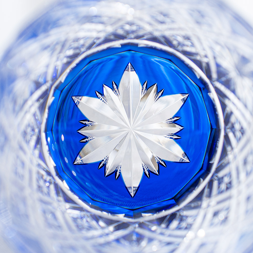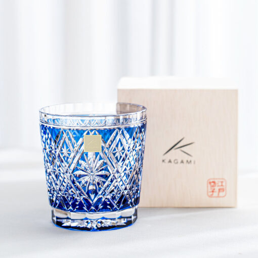 職人篠崎英明 菱花紋威士忌杯 (320ml) 藍 /KAGAMI/江戶切子/木盒裝