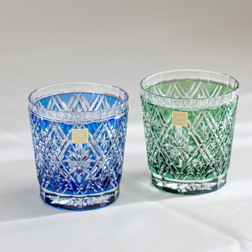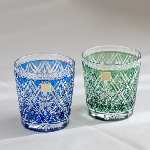 KAGAMI精湛工藝職人所生產的彩色江戶切子清酒杯, 不但是多家米其林星級餐廳所選定的必備酒杯,也曾為日本知名企業打造限定款器皿,如資生堂的「White Rose」香水瓶,三得利威士忌酒瓶 ,日本足球協會限定款酒杯….等,可說是日本江戶切子的皇家品牌。