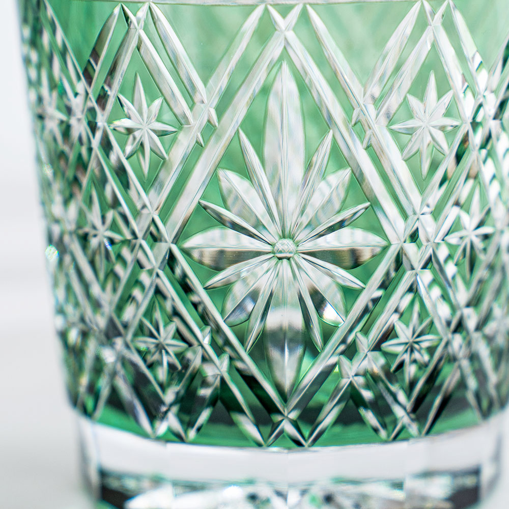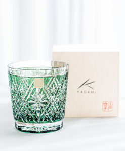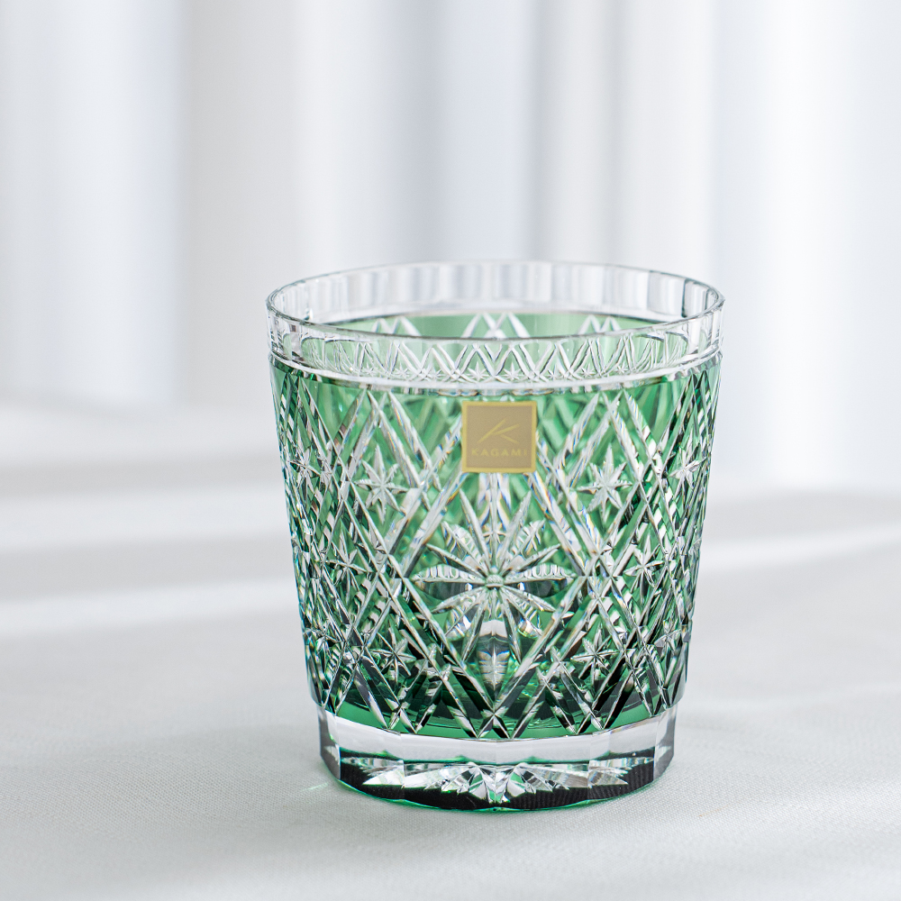 職人篠崎英明 菱花紋威士忌杯 (320ml) 綠 /KAGAMI/江戶切子/木盒裝