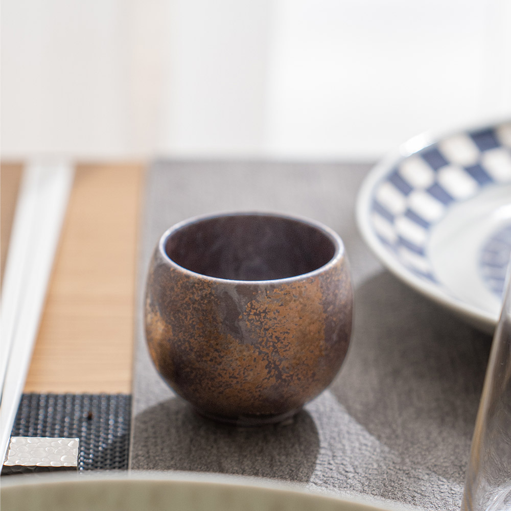 丸形小杯是質地較厚實的器皿,握在手中有著舒適的重量感,卻不厚重。具現代時尚風格,可做為清酒杯,也可做為茶杯。