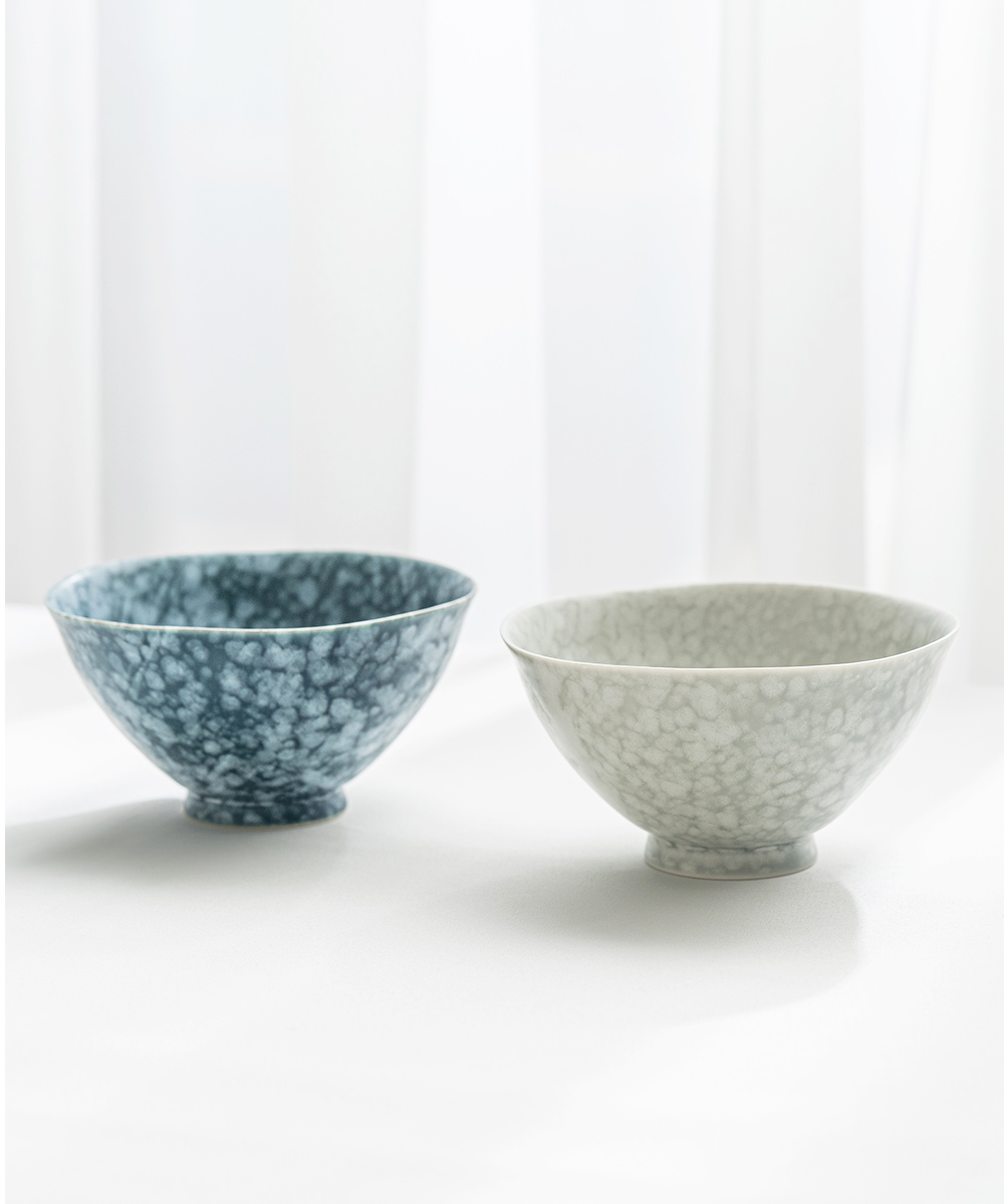 灰色及藍色的對碗組合,現代感十足,做為夫妻碗是餐桌上的個性風格器皿。