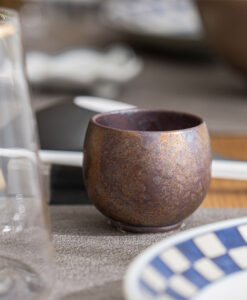 絞銅散系列,是金善窯的經典作品,在釉料中加入特殊的礦物成份,燒製後的窯變,呈現出具現代感的金屬光澤及紋路。因此,每一個作品都有著不同釉面的獨特性。