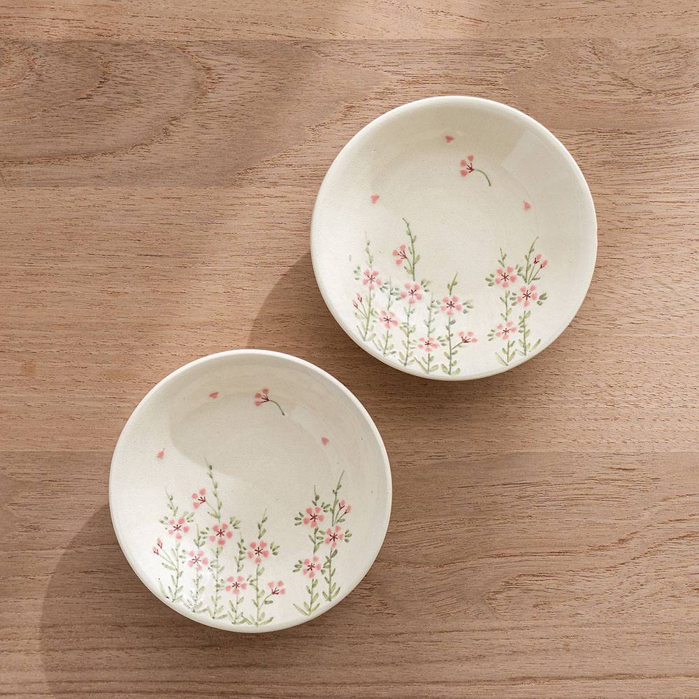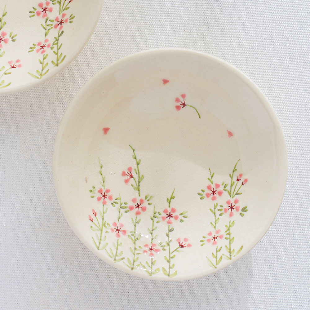 由擁有深厚日本風格繪畫技巧的工匠完成手繪,工匠的創意和熟練技巧,展現得淋漓盡致。櫻花是逐一手繪在未上釉的碗面上,由於基底材料的高吸水性,繪製精緻的彩色設計需要極高的技巧。每個器皿在繪製完成後會塗上一層波釉,為細緻圖案增添清晰光澤的保護層。