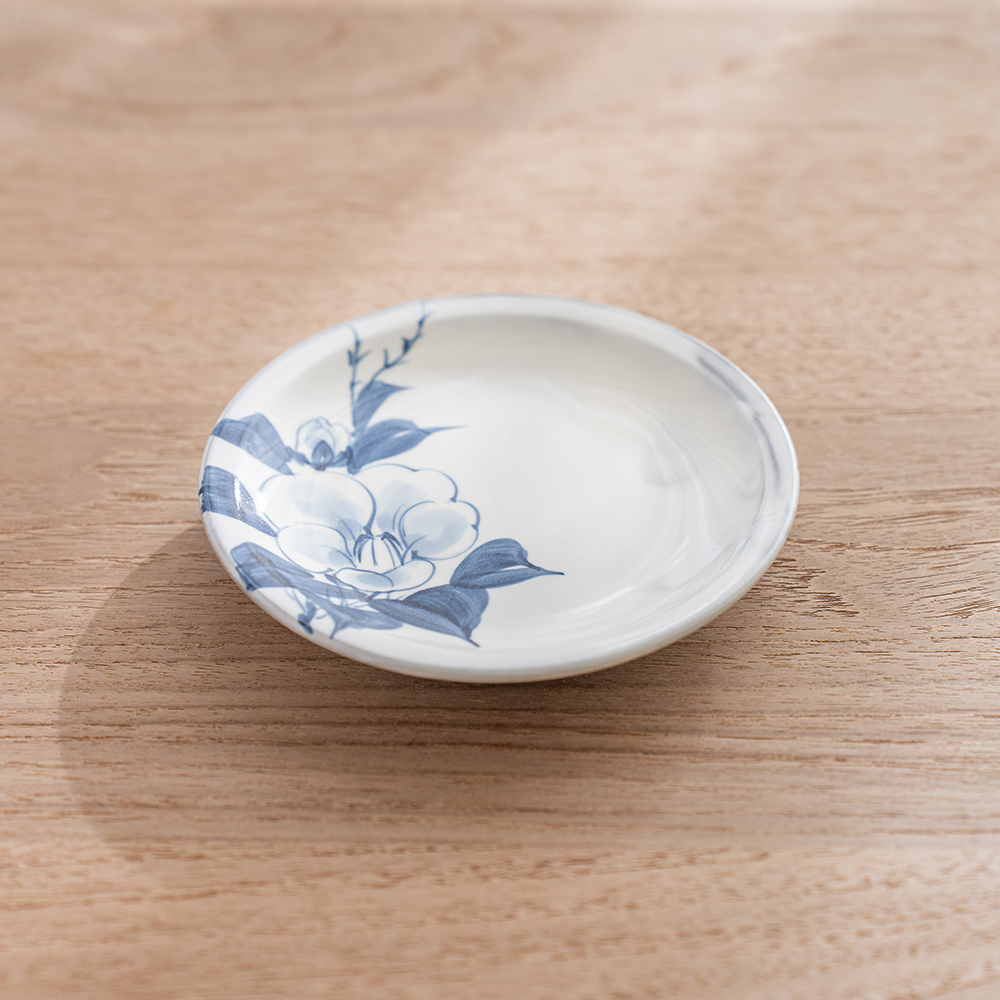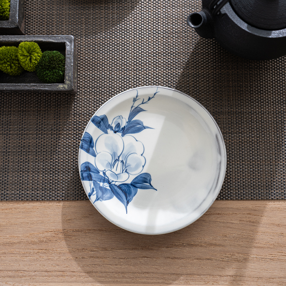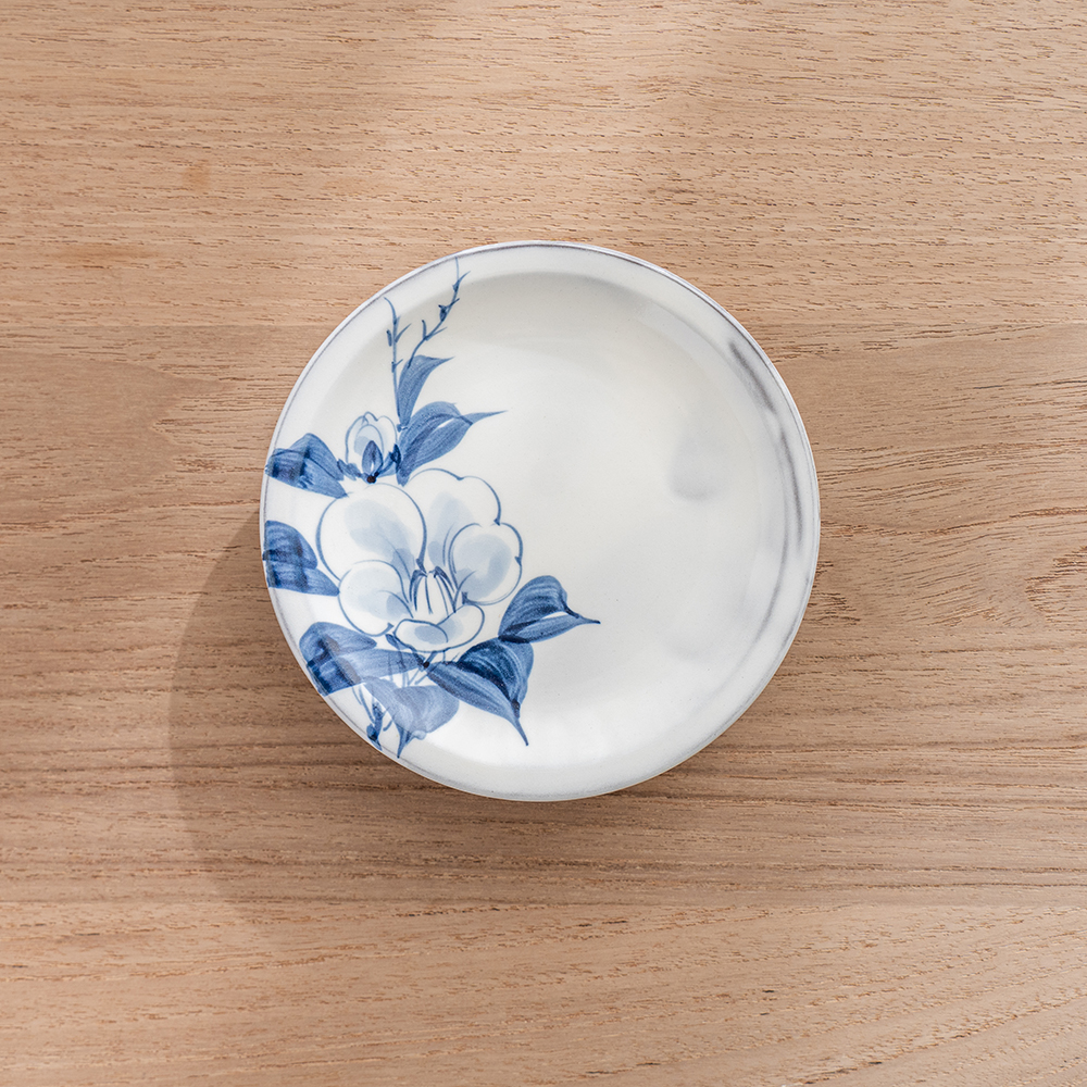 2.染付椿小盤 *1件:直徑12.5cm 高1.7cm