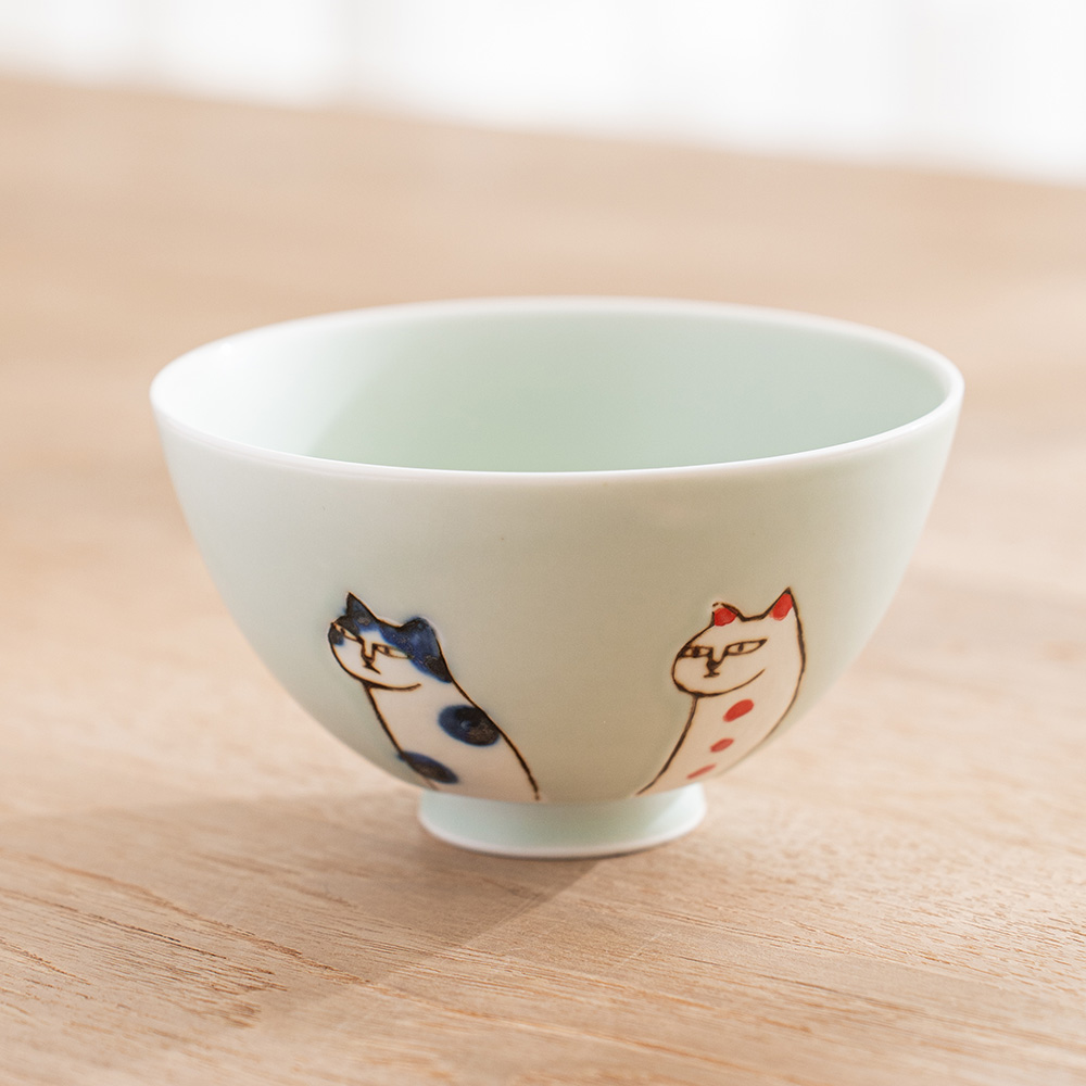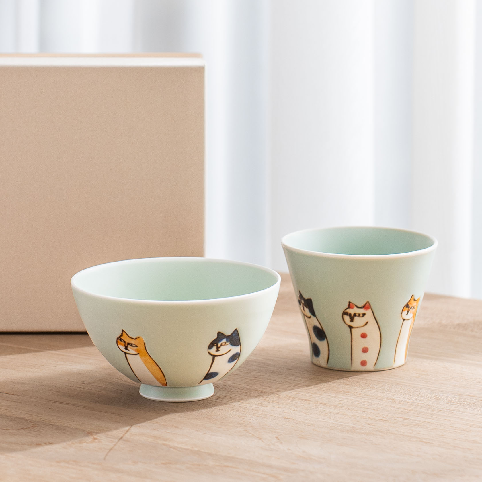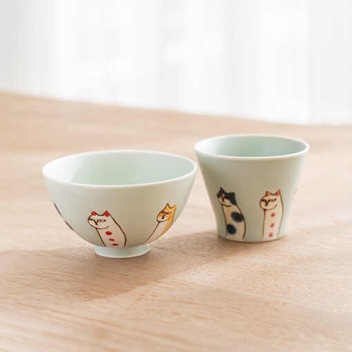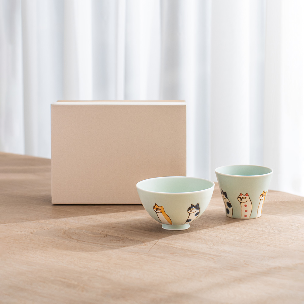 六貓飯碗茶杯組 綠 /金照堂/禮盒