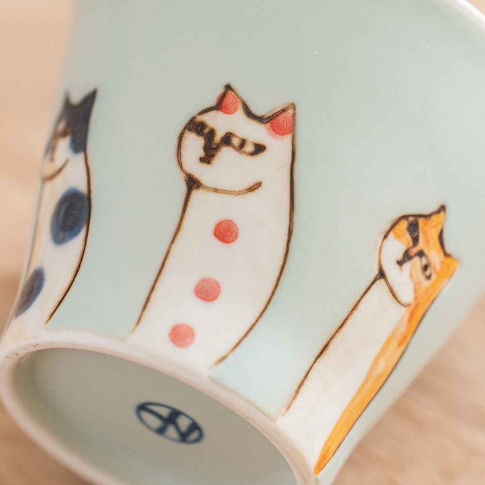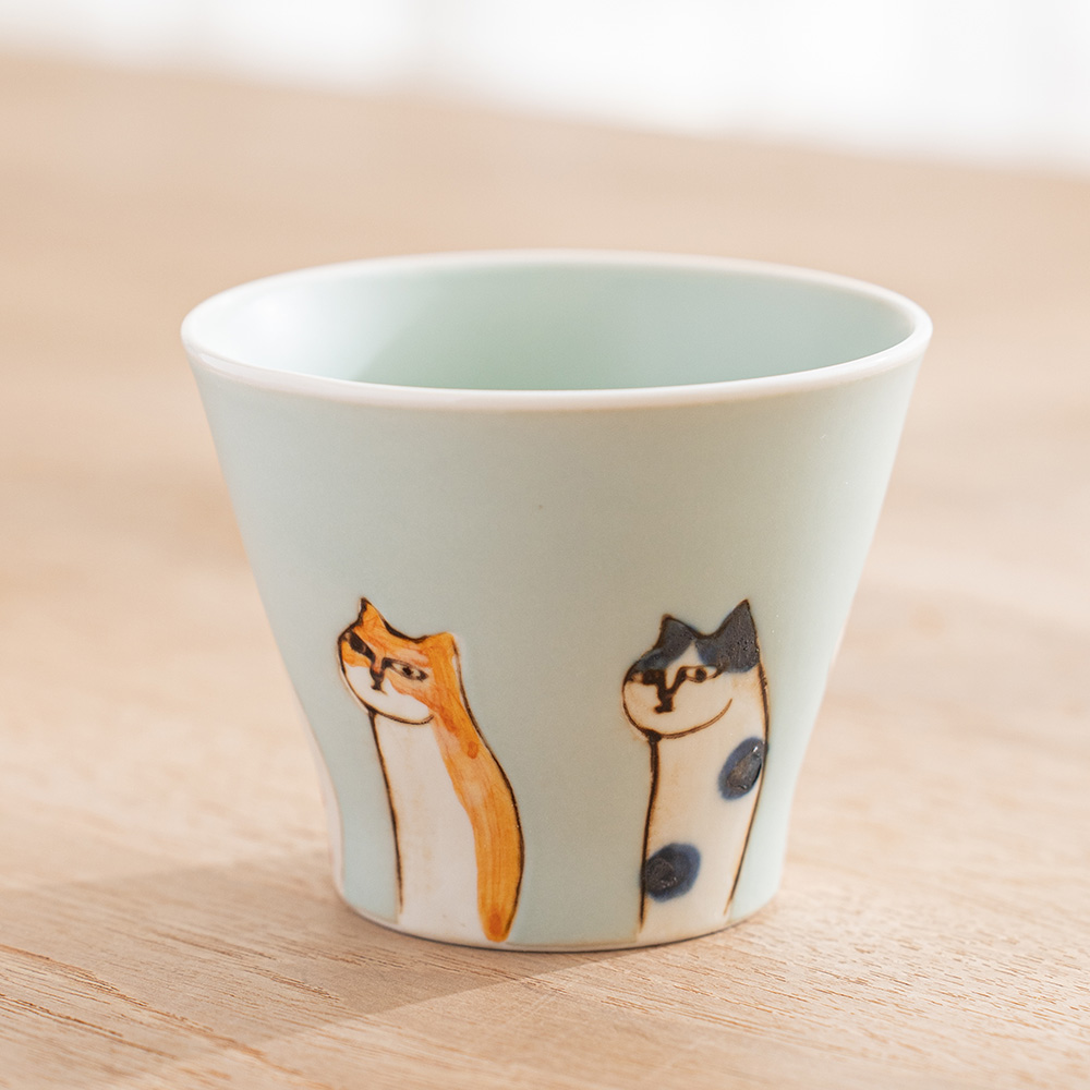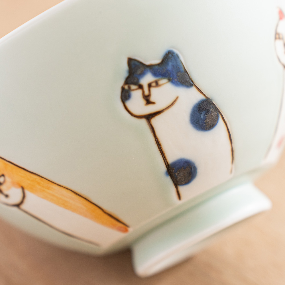 六貓飯碗茶杯組 綠 /金照堂/禮盒