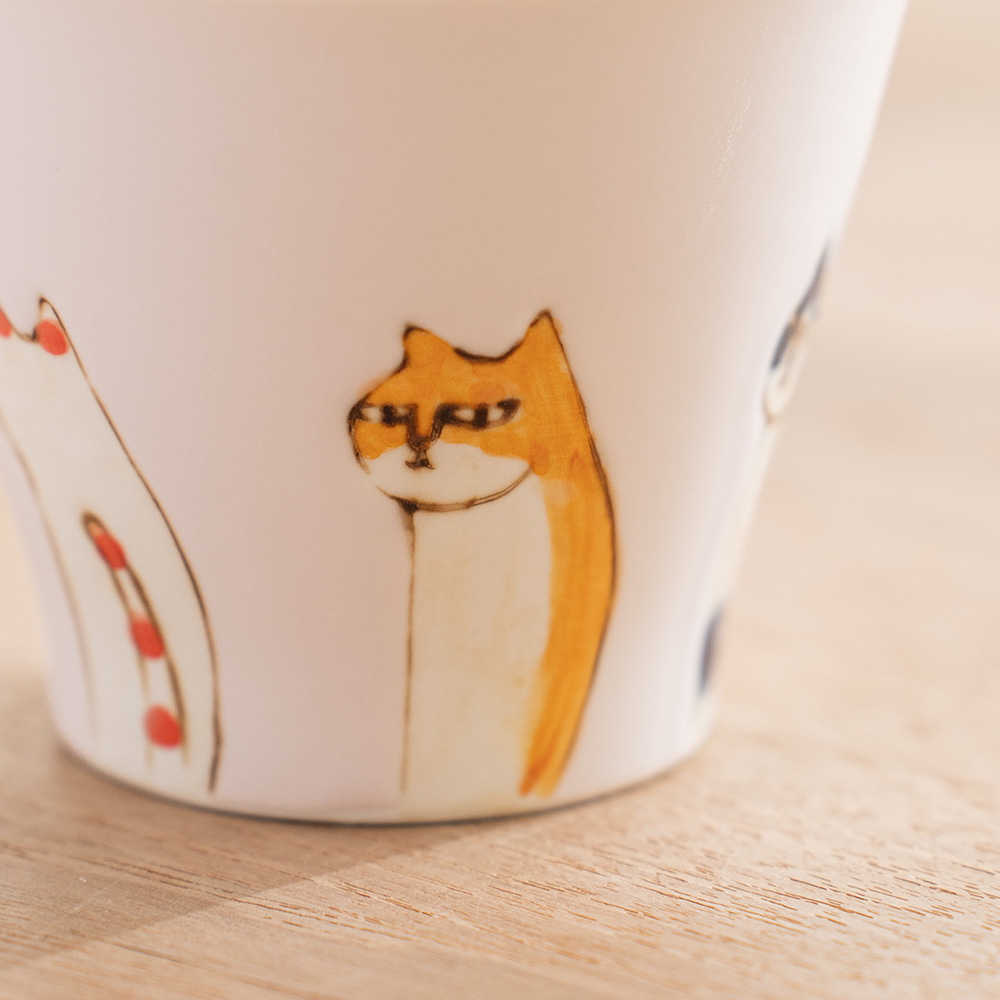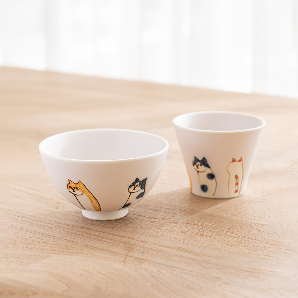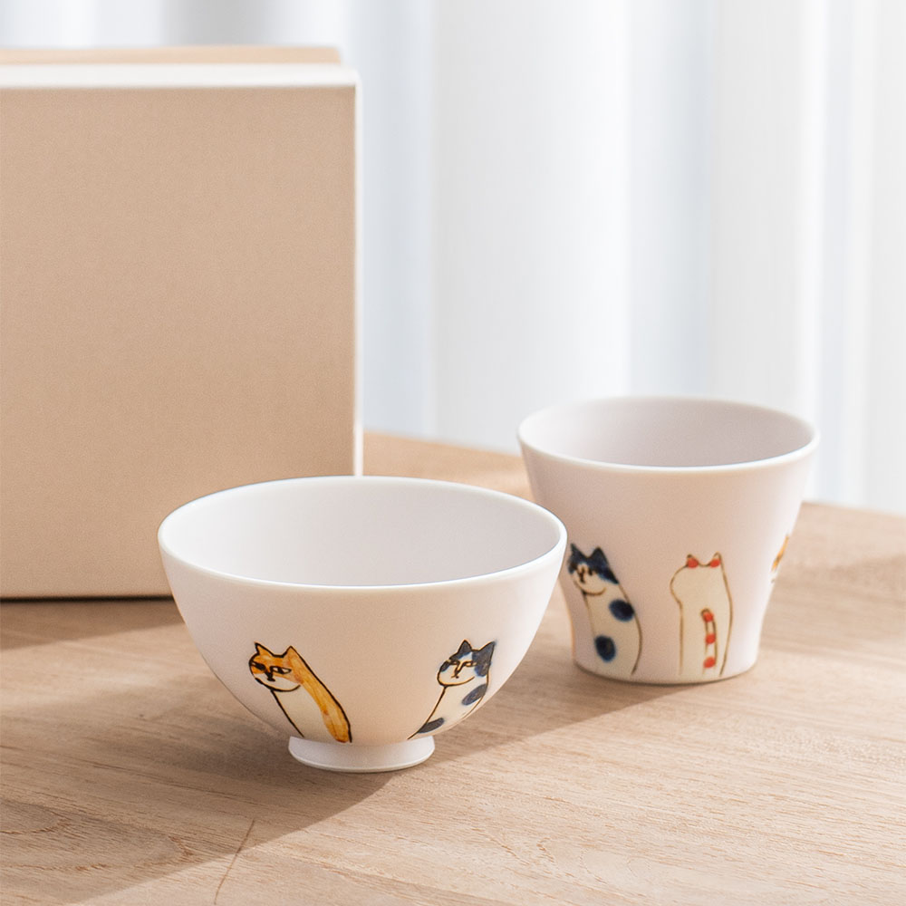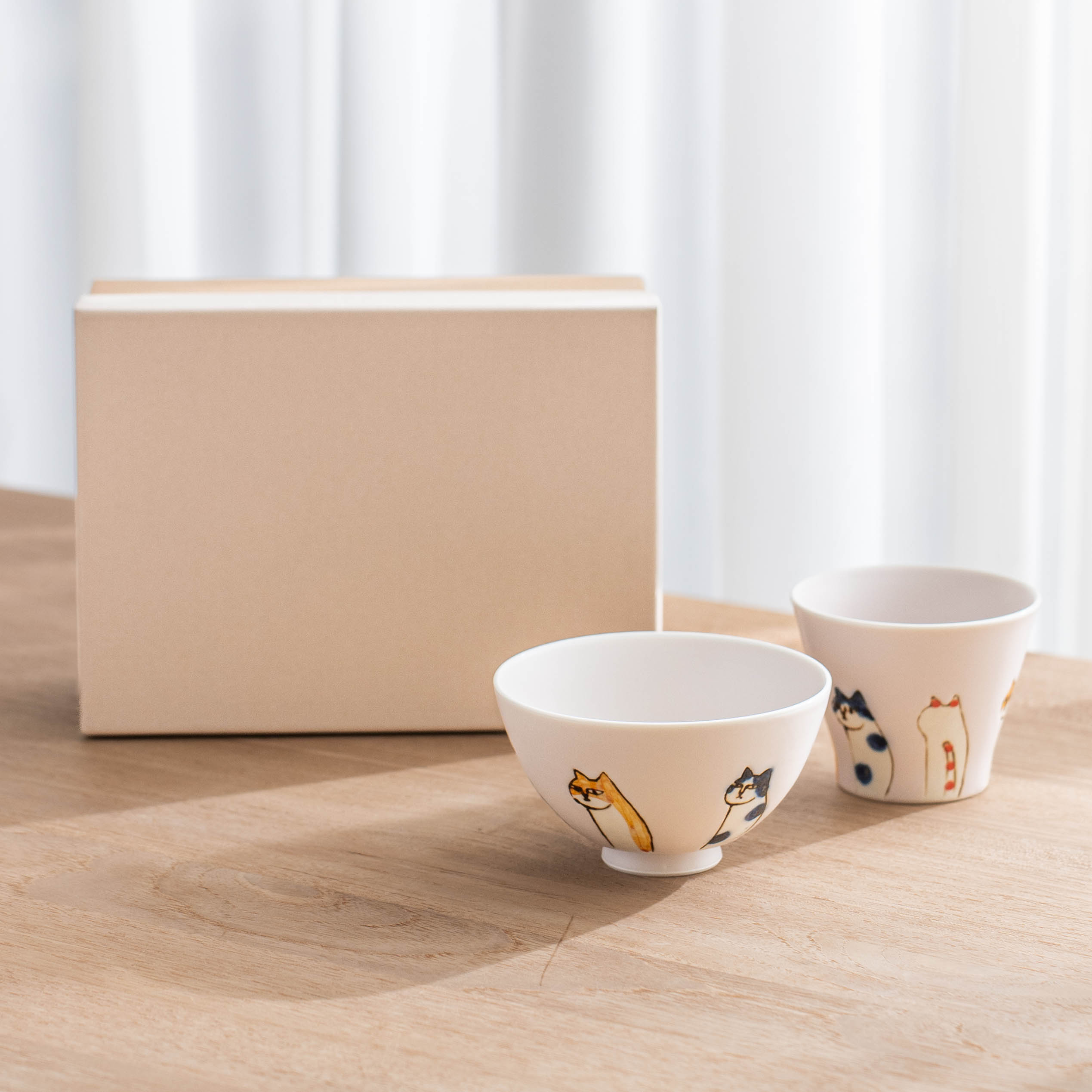 六貓飯碗茶杯組 粉紅 /金照堂/禮盒