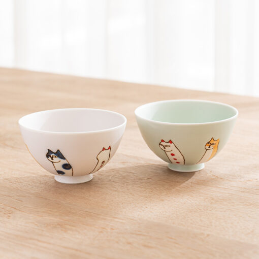 以療癒可愛的手繪貓咪,點亮每一餐的溫暖時光。粉與綠兩色對碗,清新淡雅,映照出新人之間純粹又幸福的情感。碗身上俏皮的貓咪神態各異,如同生活中彼此間的微笑與溫柔互動,增添滿滿幸福感。