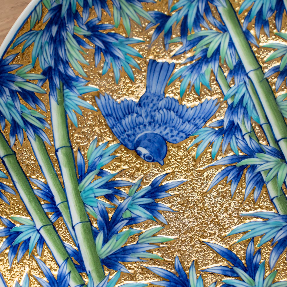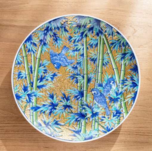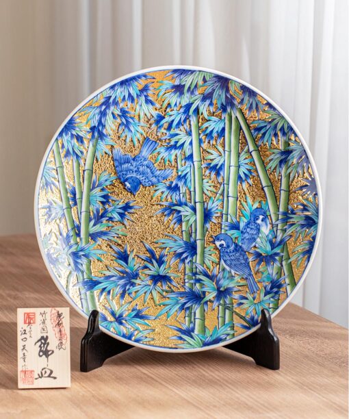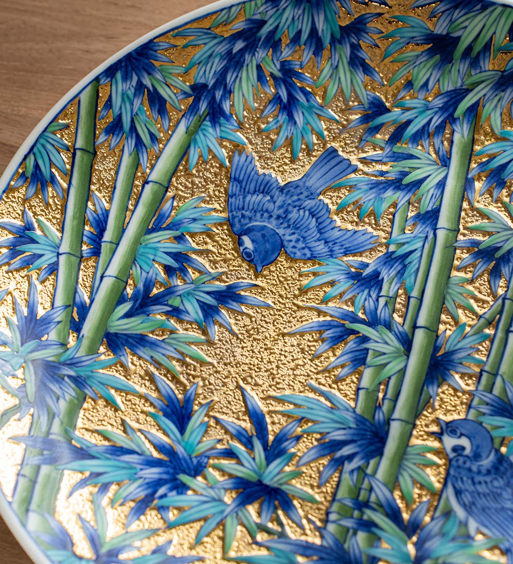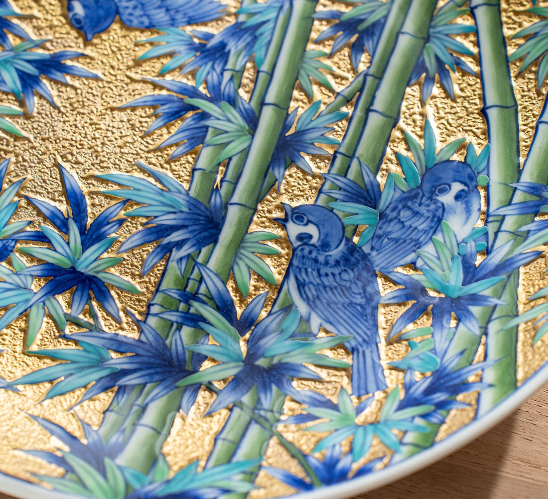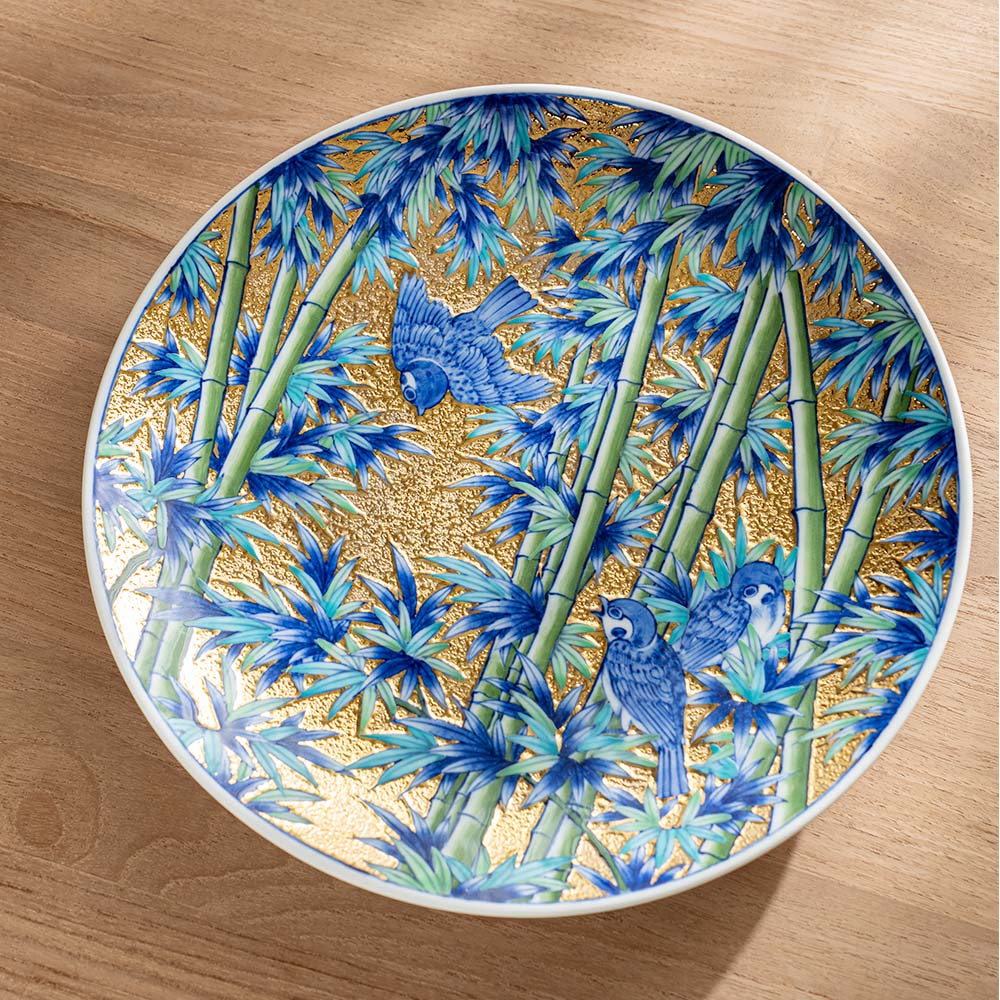 金彩竹雀 大盤/展示盤 (31cm) /江口天童作品/金龍窯/木盒裝