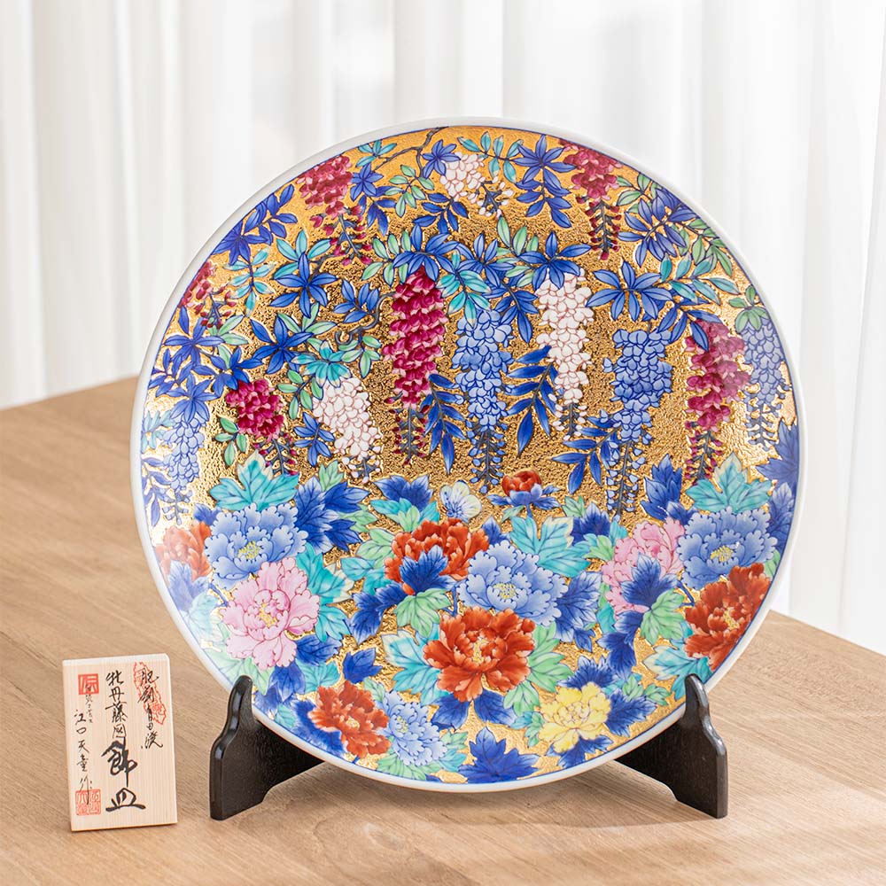 金彩牡丹藤 展示盤 (40cm) /江口天童作品/金龍窯/木盒裝
