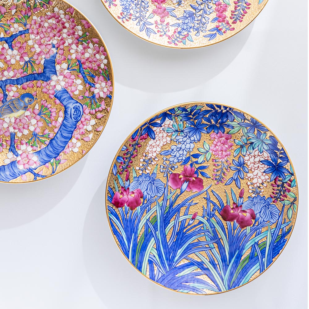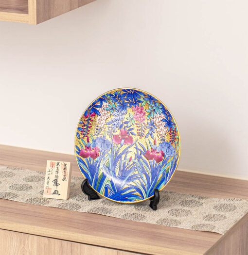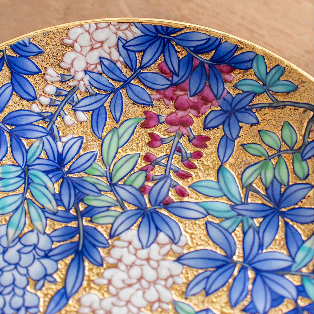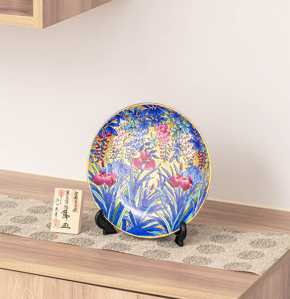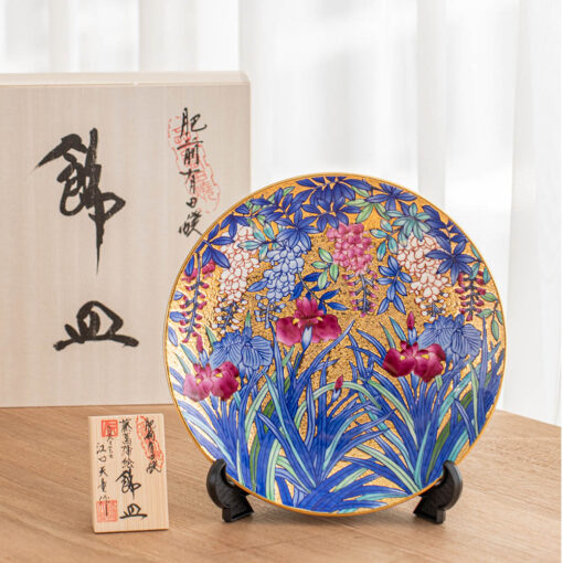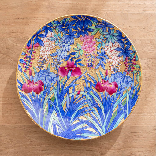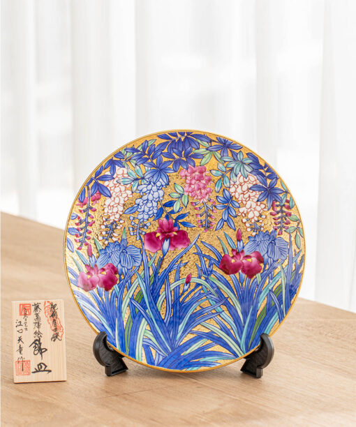 金彩藤菖蒲 大盤/展示盤 (24.5cm) /江口天童作品/金龍窯/木盒裝