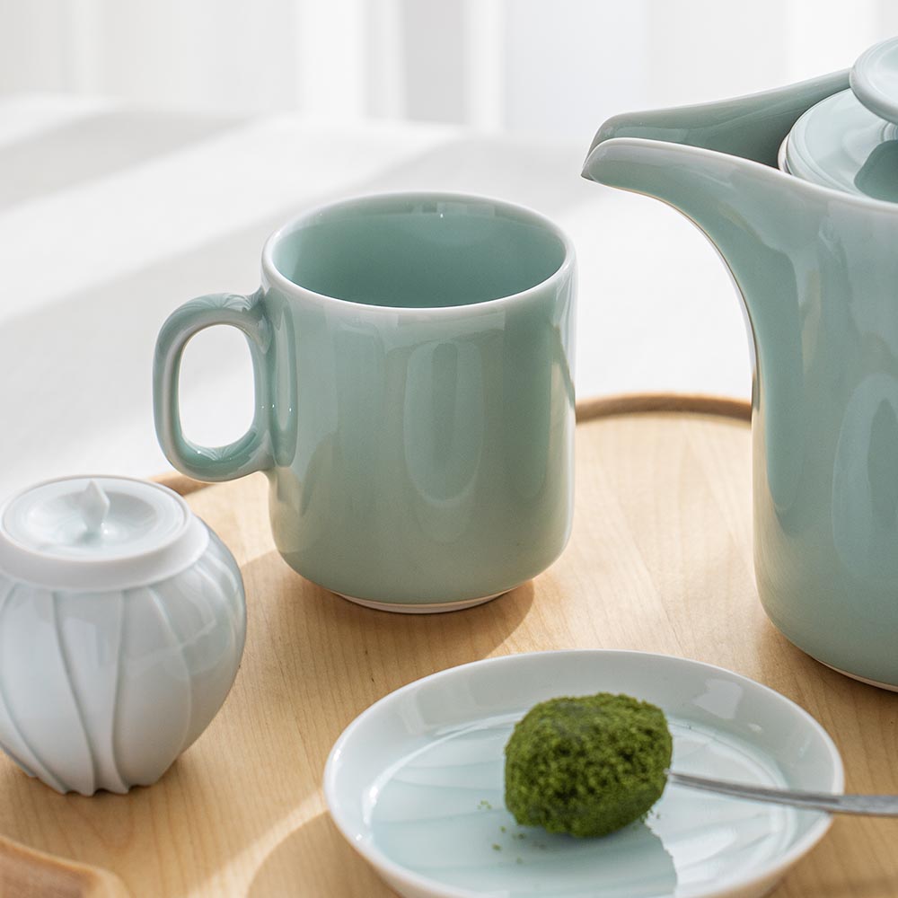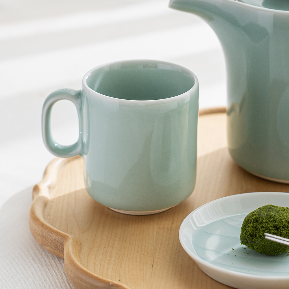 外型圓潤,搭配虎仙窯青瓷獨有的溫柔光澤,沒有傳純的厚重感,沒有高價青瓷的距離感。職人想打造的是,讓我們可以近距離欣賞的日常青瓷,拿在手中有著讓人心安定的寧靜感。馬克杯的大小尺寸適合早晨時的一杯熱茶或咖啡。