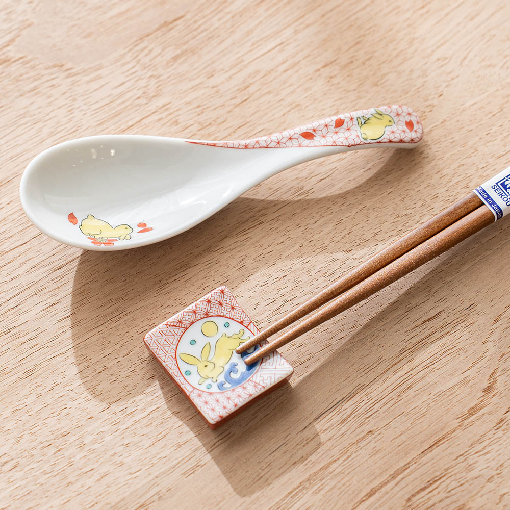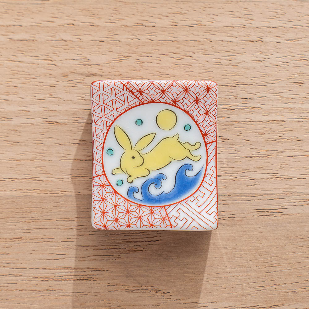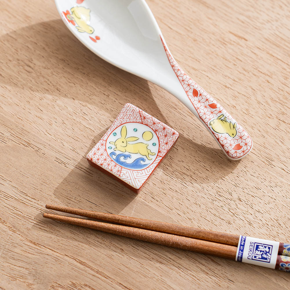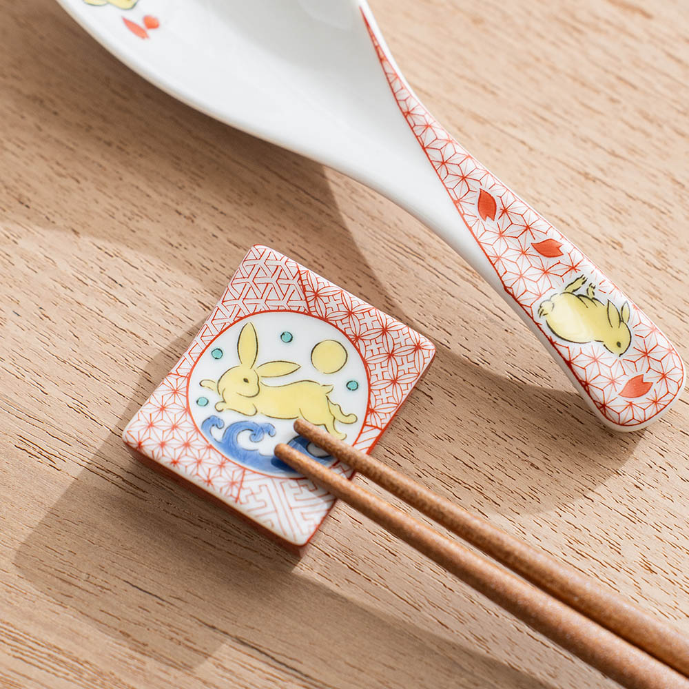 玉兔彩繪筷架 /九谷青郊窯