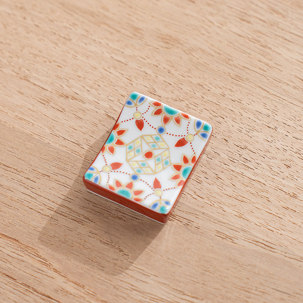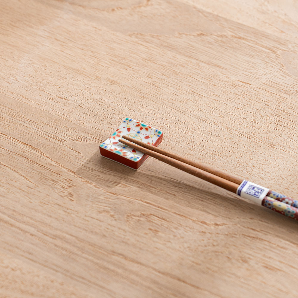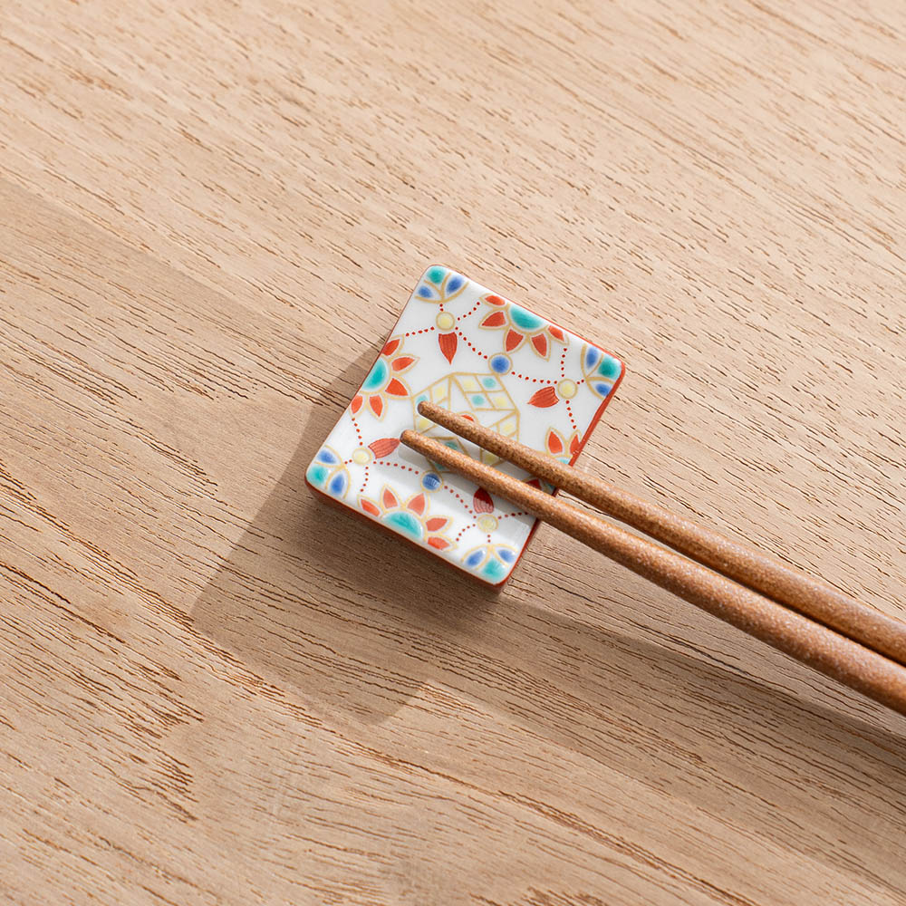 瓔珞紋彩繪筷架 /九谷青郊窯