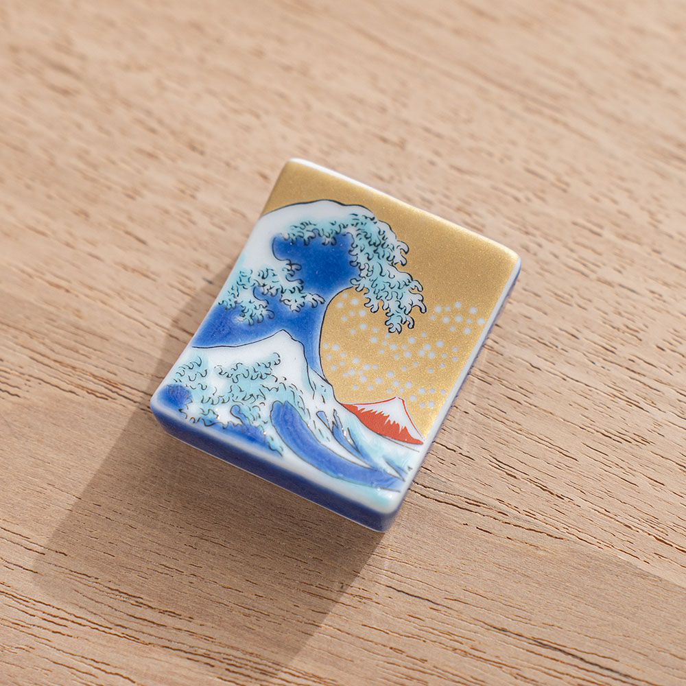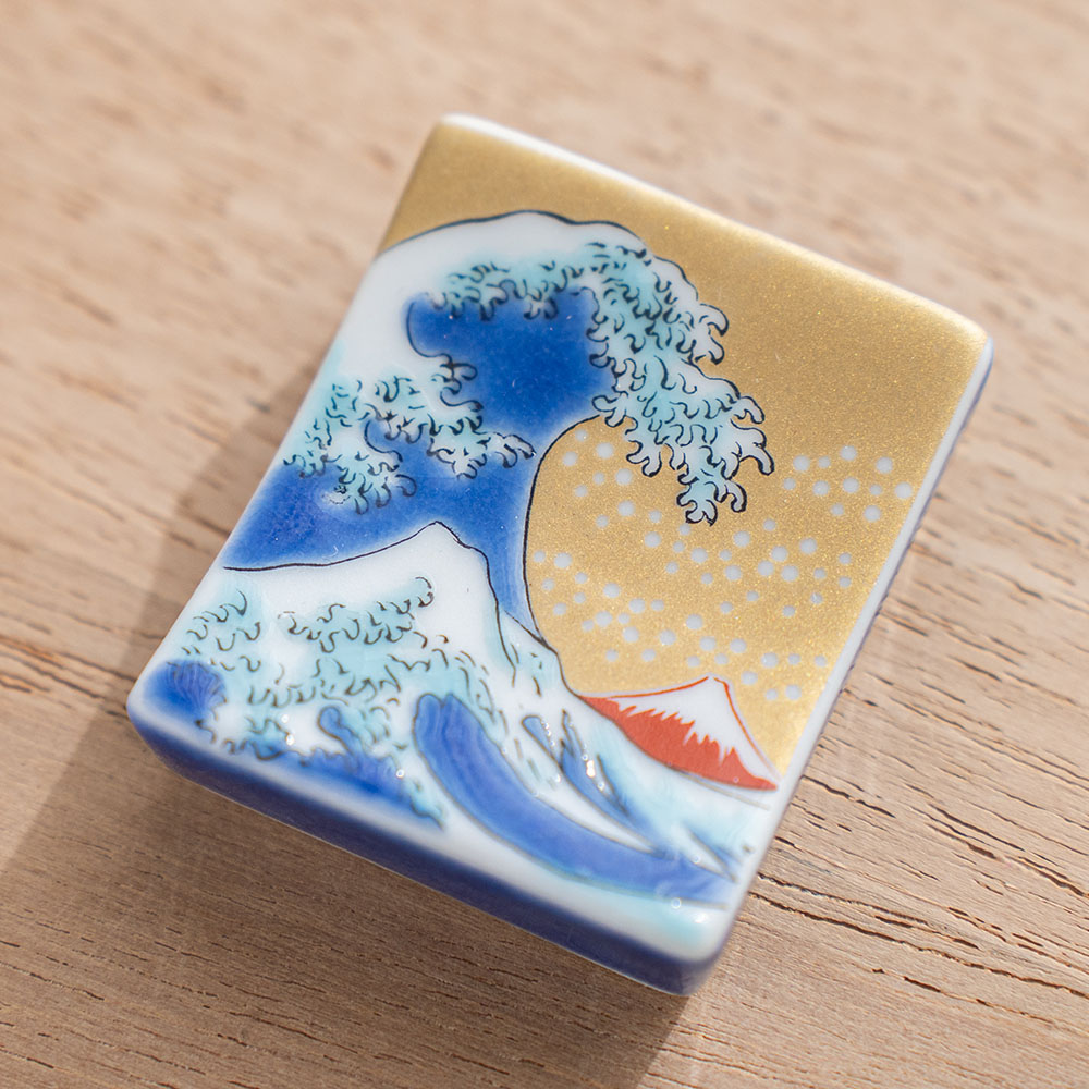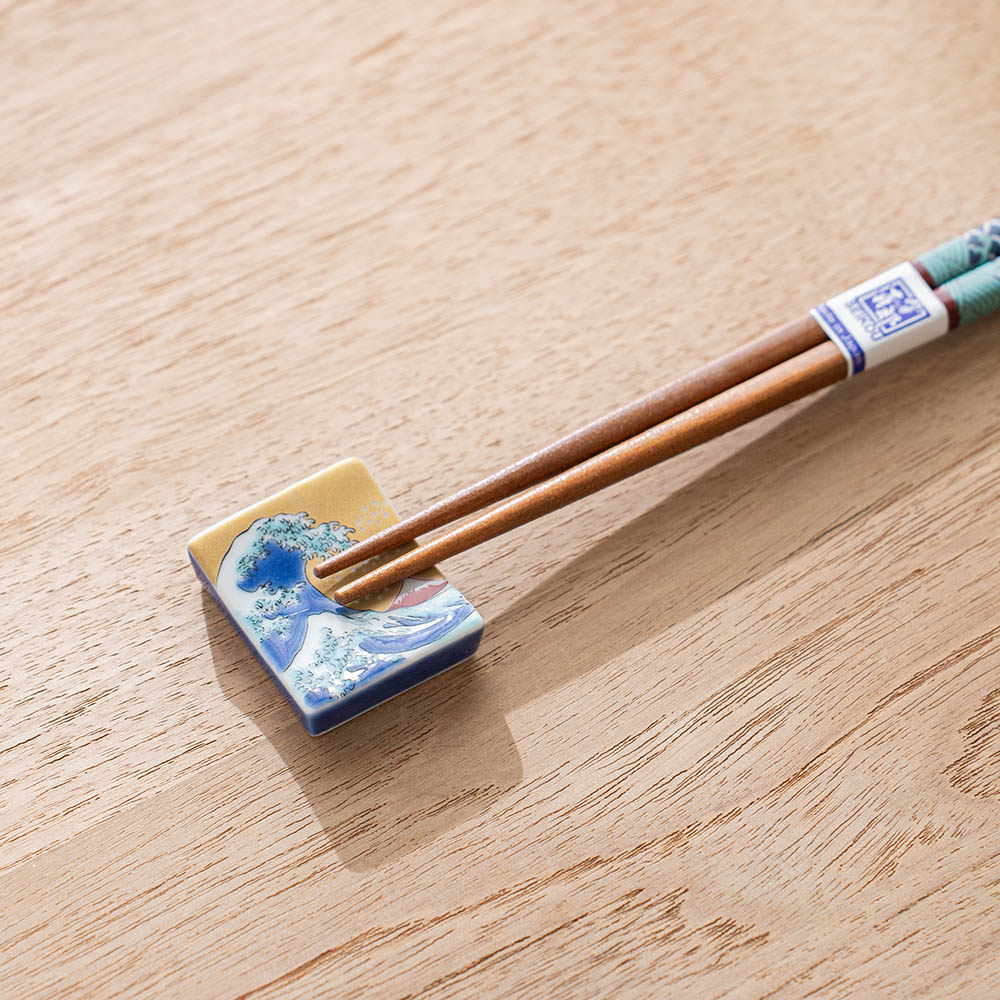 北齋波彩繪筷架 /九谷青郊窯