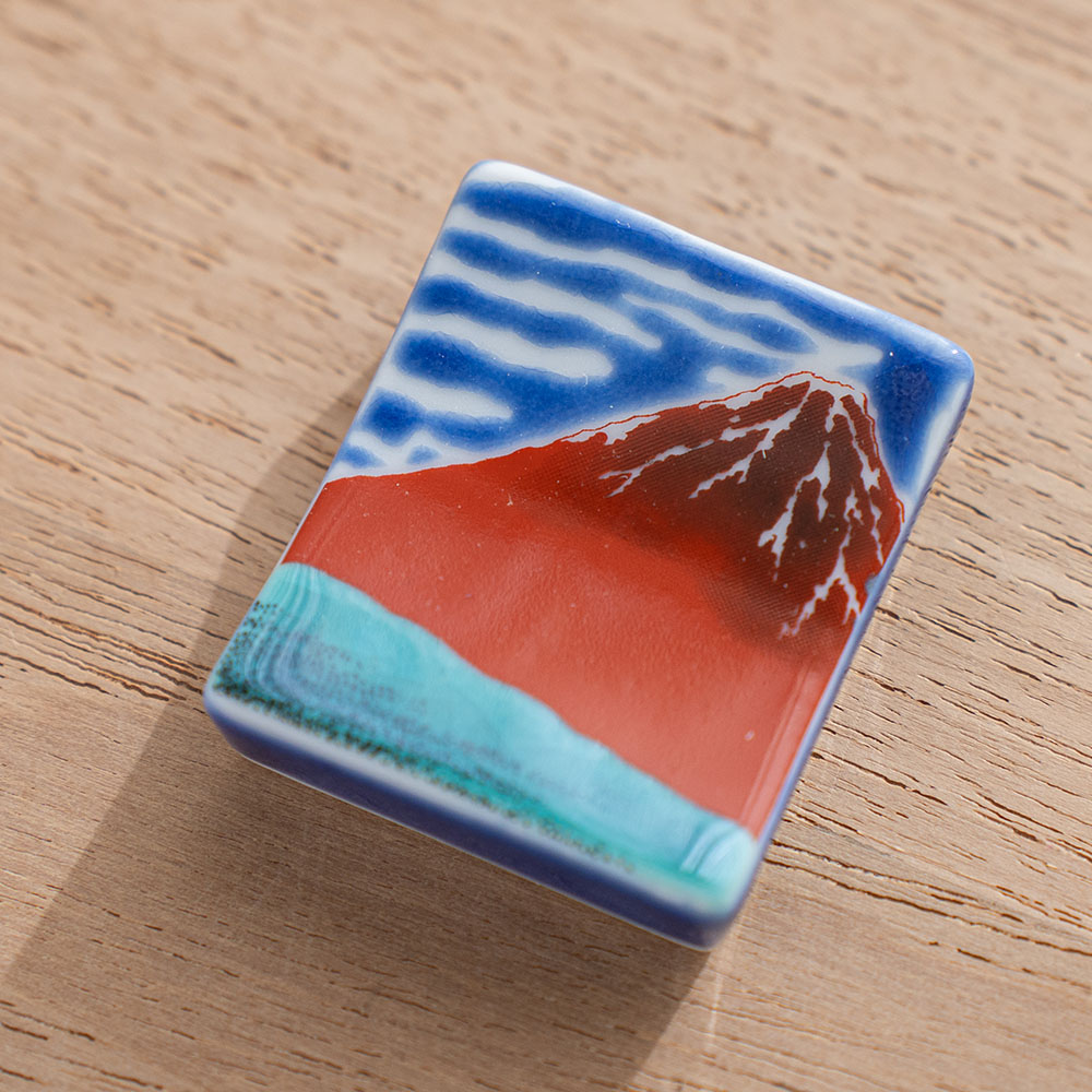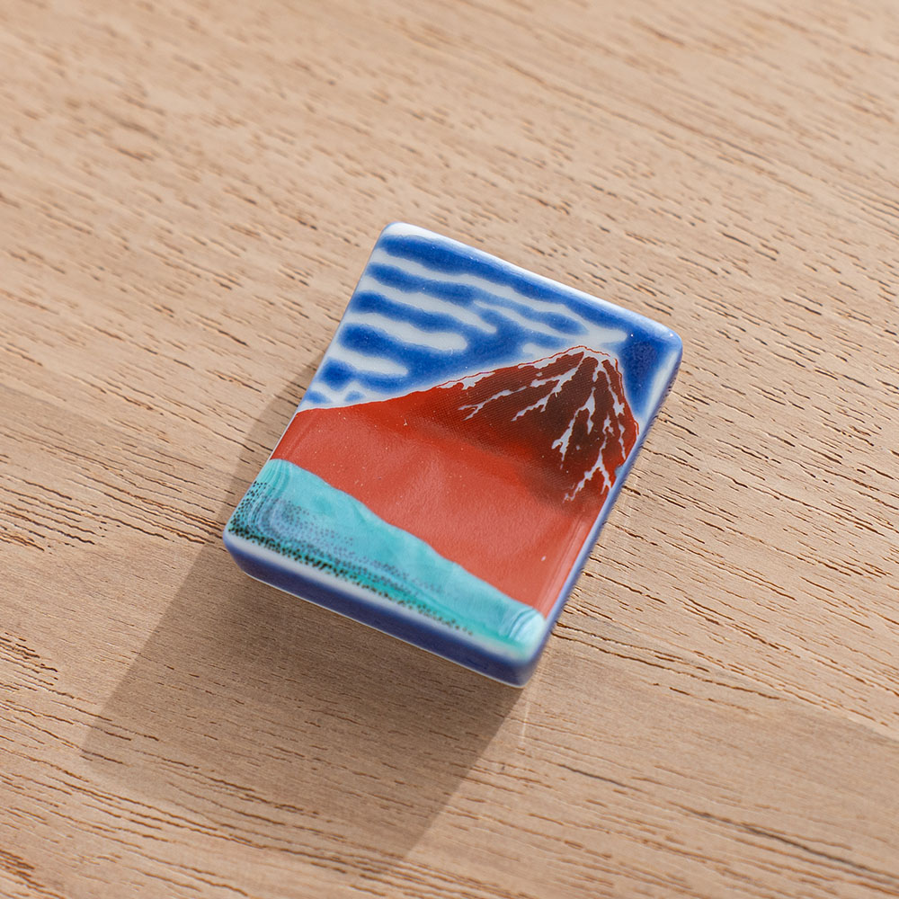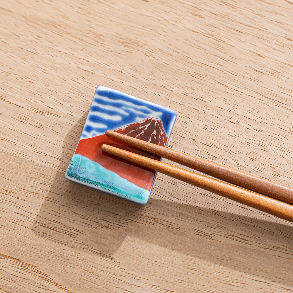 赤富士彩繪筷架 /九谷青郊窯
