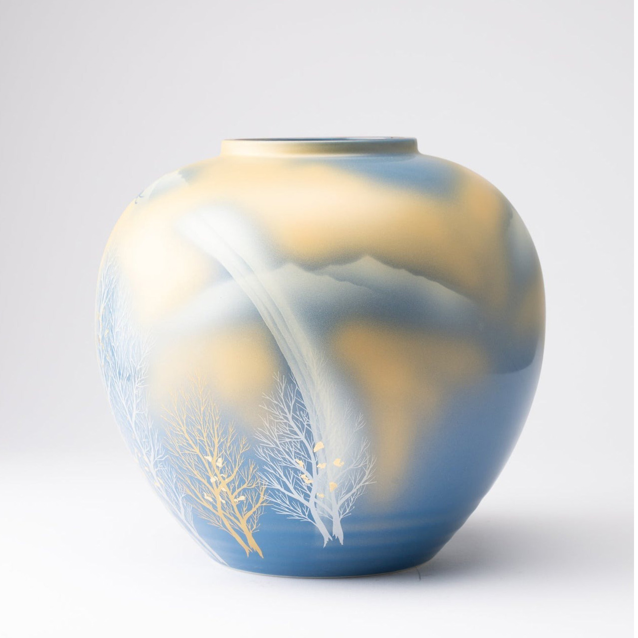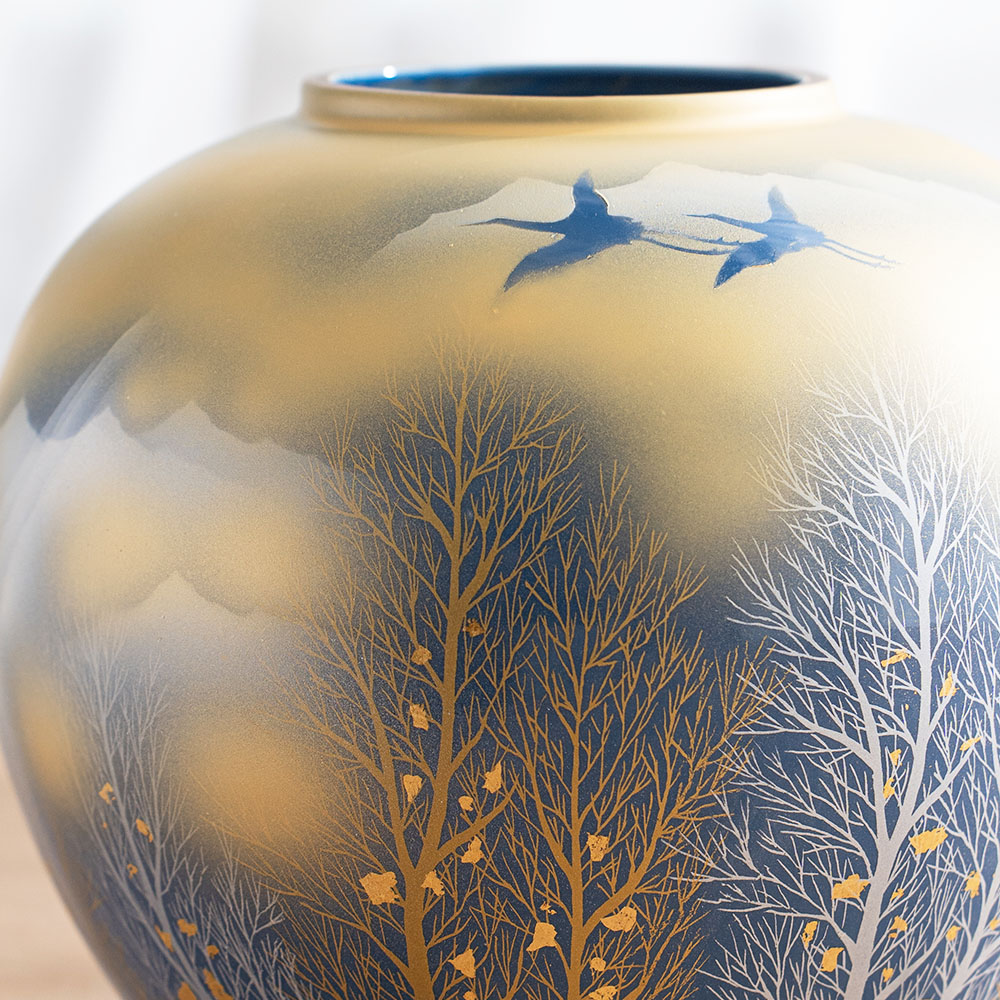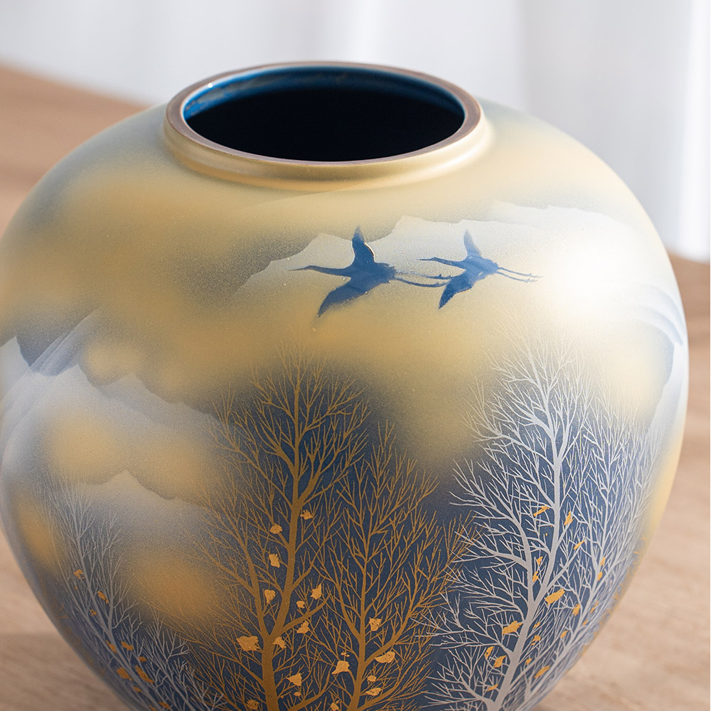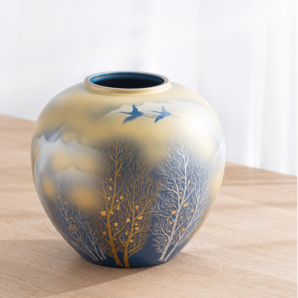 這款九谷燒大花瓶以深邃細膩的描繪手法,呈現出一幅夢幻而唯美的風景,如同一件真正的藝術品。