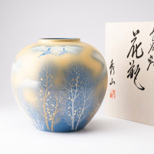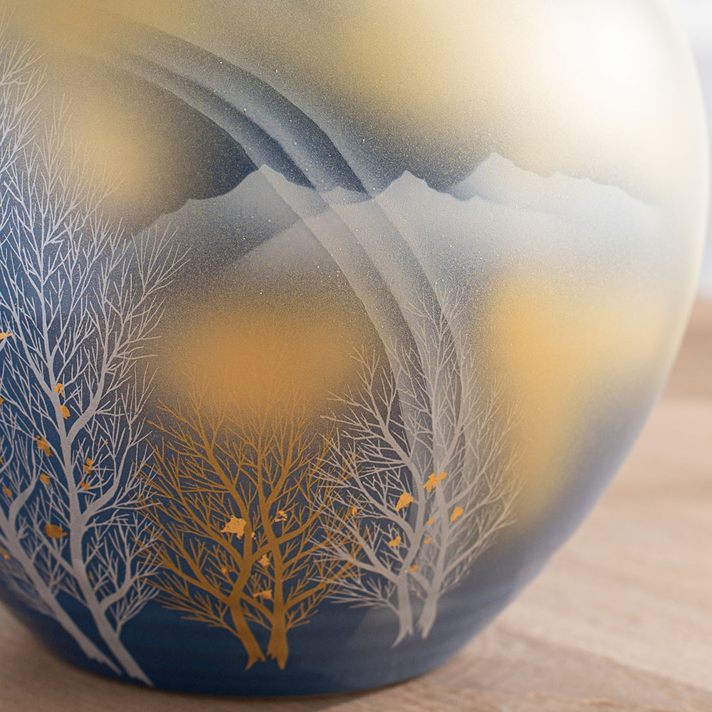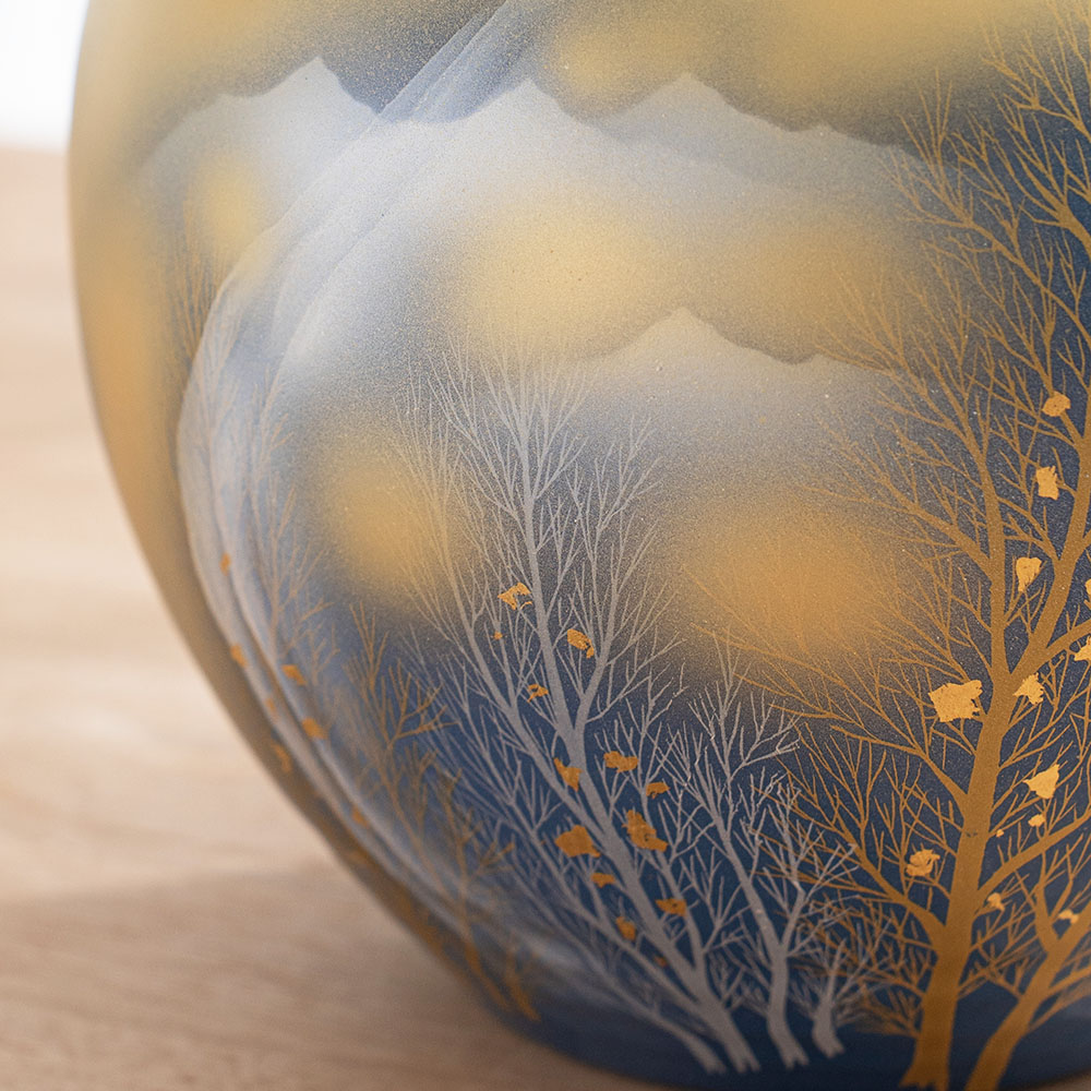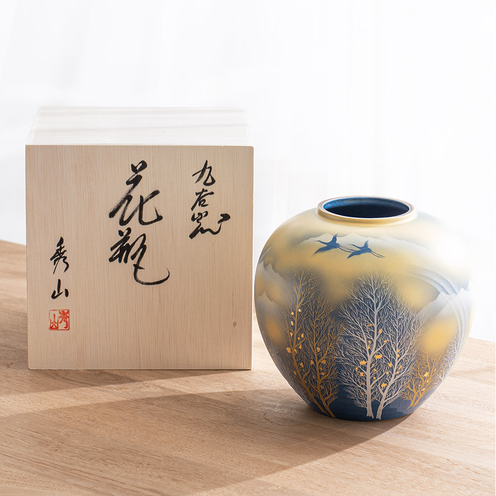 這款九谷燒大花瓶以深邃細膩的描繪手法,呈現出一幅夢幻而唯美的風景,如同一件真正的藝術品。