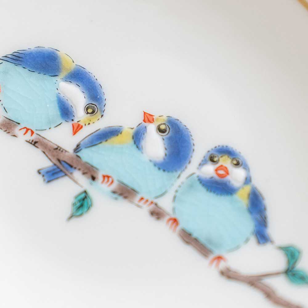 青郊窯以精緻筆觸,捕捉了山雀在枝頭輕盈跳躍、啁啾鳴唱的優雅神態,為啜飲間的品茗或小酌時光注入明亮生命力,讓生活細節也充滿美好的期盼。