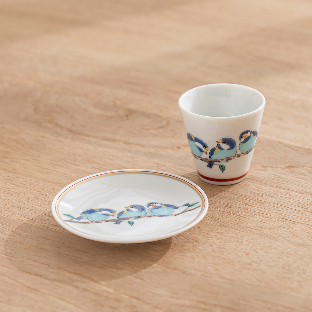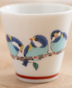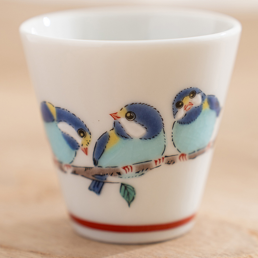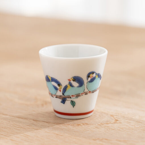 茶席間的靈動風景,從一隻精緻的山雀開始。這款吉祥小杯來自知名「青郊窯」,以品牌標誌性的溫潤彩繪,在盈盈一握的杯身上勾勒出日本傳統中象徵喜訊與好運的吉祥鳥——山雀。