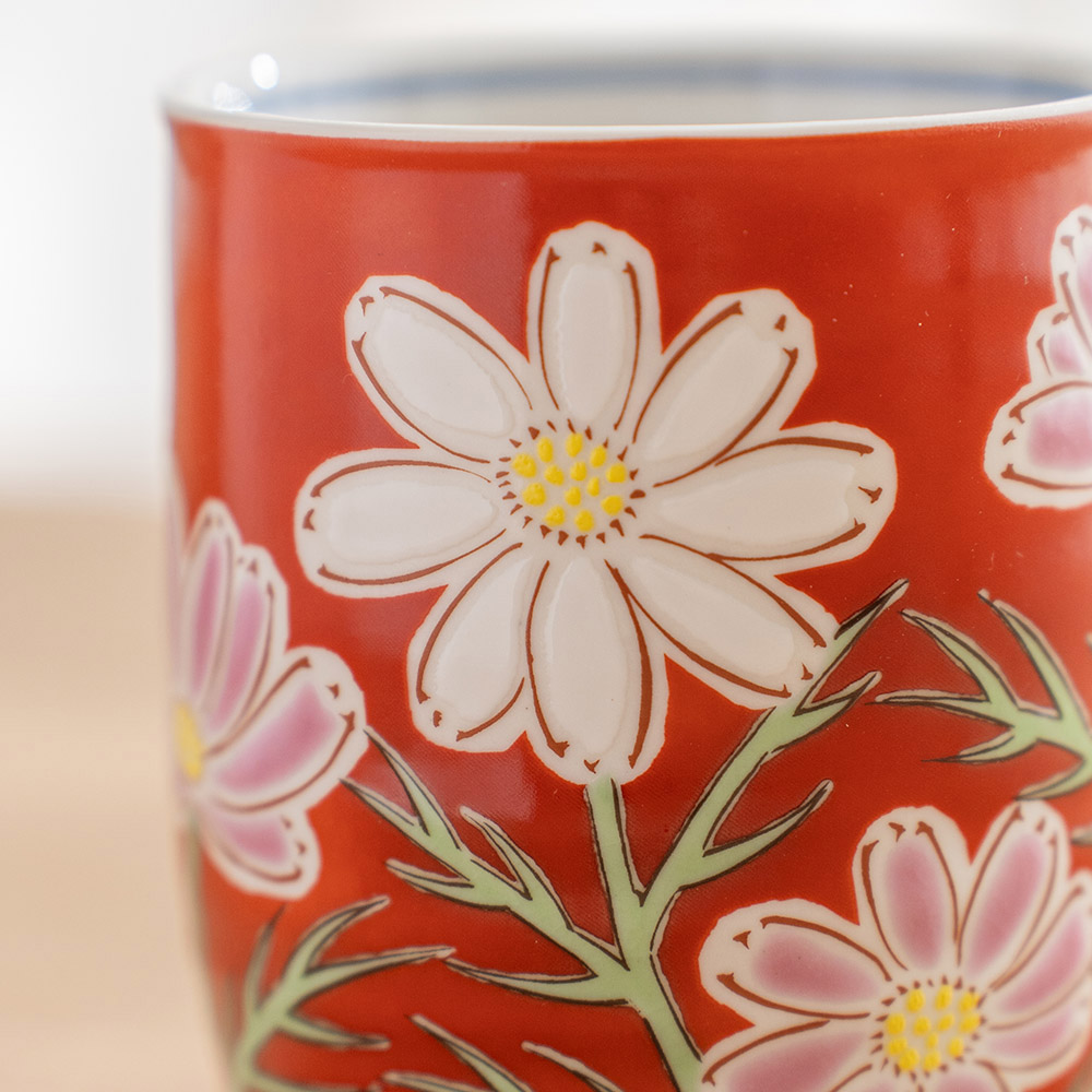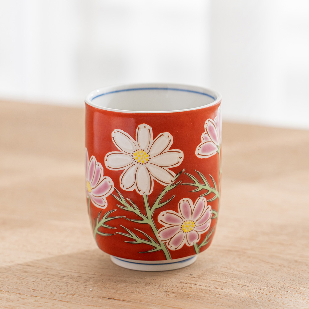 大波斯菊以其隨風搖曳、優雅挺拔的姿態深受喜愛,象徵著「純潔與和諧」。作為四季系列中的秋季代表,青郊窯以經典的溫潤彩繪,在白瓷杯身勾勒出花朵盛開的靈動神態,為秋日的桌案注入一份寧靜與生命力。無論是清晨的熱咖啡或午後的溫潤茶飲,職人手作的細膩質感,讓每次舉杯都成為感知季節更迭的儀式。