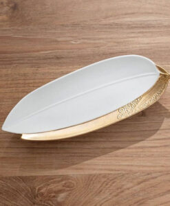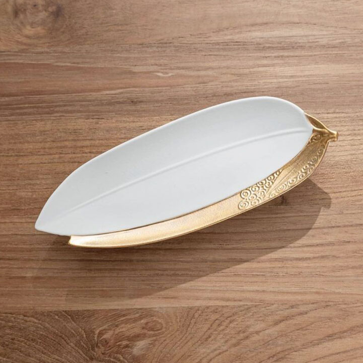 立體渦紋 金彩葉形缽